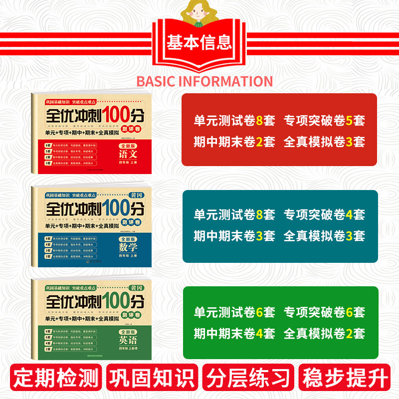 《黄冈试卷测试卷全套》(四年级下册)是人教版教材同步配套练习册,涵盖语文、数学、英语三科,专为小学四年级下学期学生设计。试卷紧扣课本知识点,题型丰富,难度适中,包含课课练、单元测试、期中及期末冲刺卷,帮助学生夯实基础、查漏补缺。内容编排科学,注重知识巩固与能力提升,配有详细答案解析,便于学生自测与家长辅导。无论是日常练习还是期末复习,都能有效提升学习效率,是四年级学生巩固知识、提高成绩的理想学习工具。