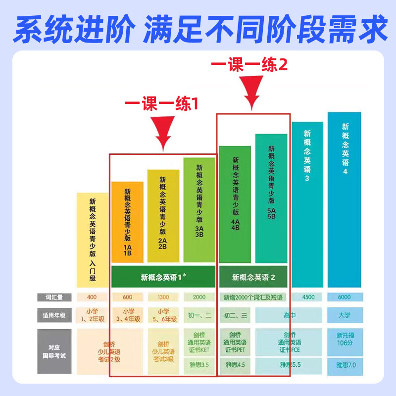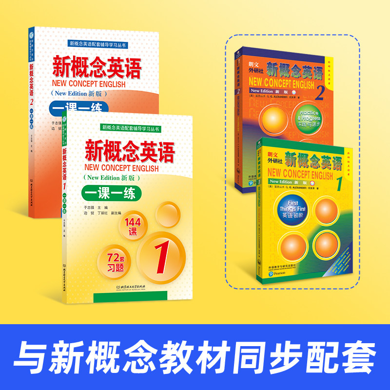 天猫正版新概念英语一课一练同步测试卷1+2英语初阶新概念英语第一册教材配套辅导练习题英语自学零基础教材外语工具书英语自学教材