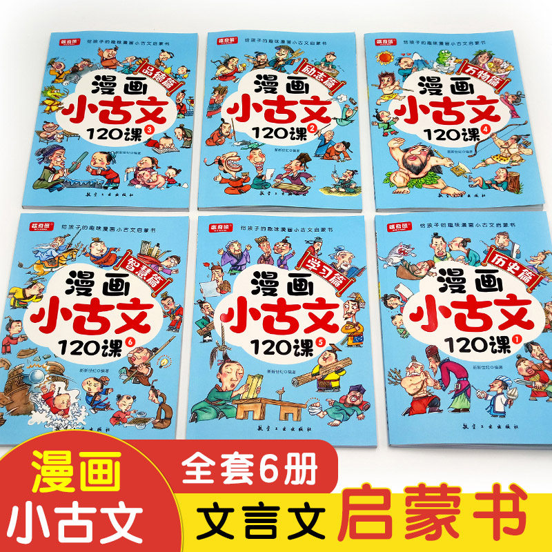 《漫画小古文120课》全套6册,专为小学4-6年级学生打造,是一套融合趣味漫画与经典文言文的启蒙读物。全书采用彩绘正版设计,图文并茂,分级阅读体系科学合理,从易到难逐步提升古文理解能力。每课配有生动插图、原文注解、趣味解读及针对性练习题,帮助孩子在轻松氛围中掌握小古文精髓。内容涵盖课内外常考篇目,助力小升初衔接,提升语文素养与阅读能力。适合四五六年级小学生自主学习或课堂辅助使用,是培养孩子文言文兴趣、夯实语文基础的理想之选。
