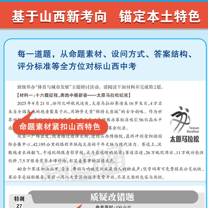 《易点通2026山西中考专项提分》是一套专为山西初中生打造的新中考总复习方案,涵盖语文、数学、物理、化学、道德与法治、历史、英语全学科。丛书紧扣山西中考命题趋势,聚焦基础知识夯实与核心能力突破,设置“基础提分”“小作文满分训练”“压轴题满分节奏”等模块,讲练结合,精准高效。通过系统梳理考点、典型例题剖析、实战模拟训练,帮助学生构建知识体系,掌握解题技巧,提升综合应试能力。无论是基础巩固还是高分冲刺,《易点通》都是备战2026山西中考的得力助手,助力考生科学备考,稳步提分。