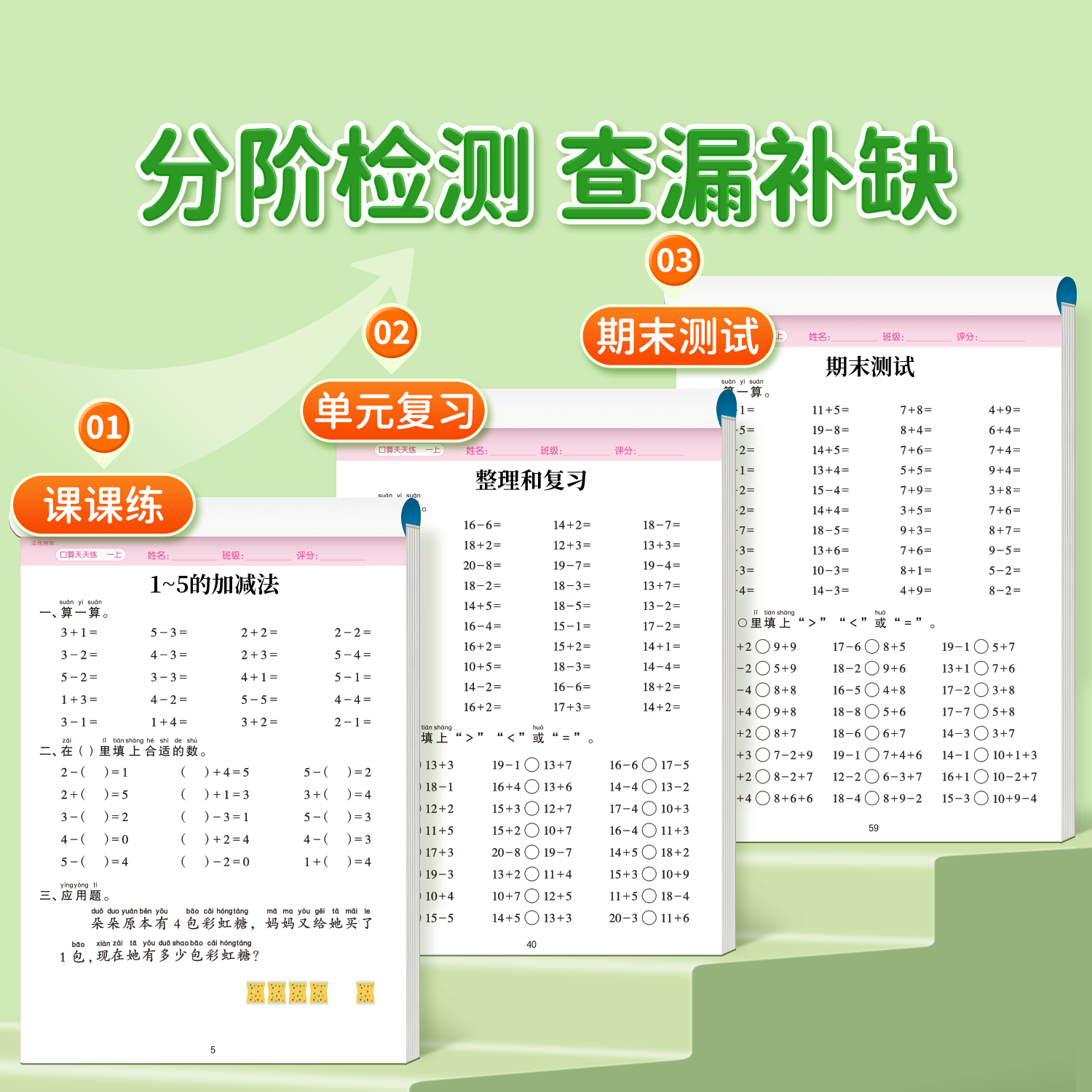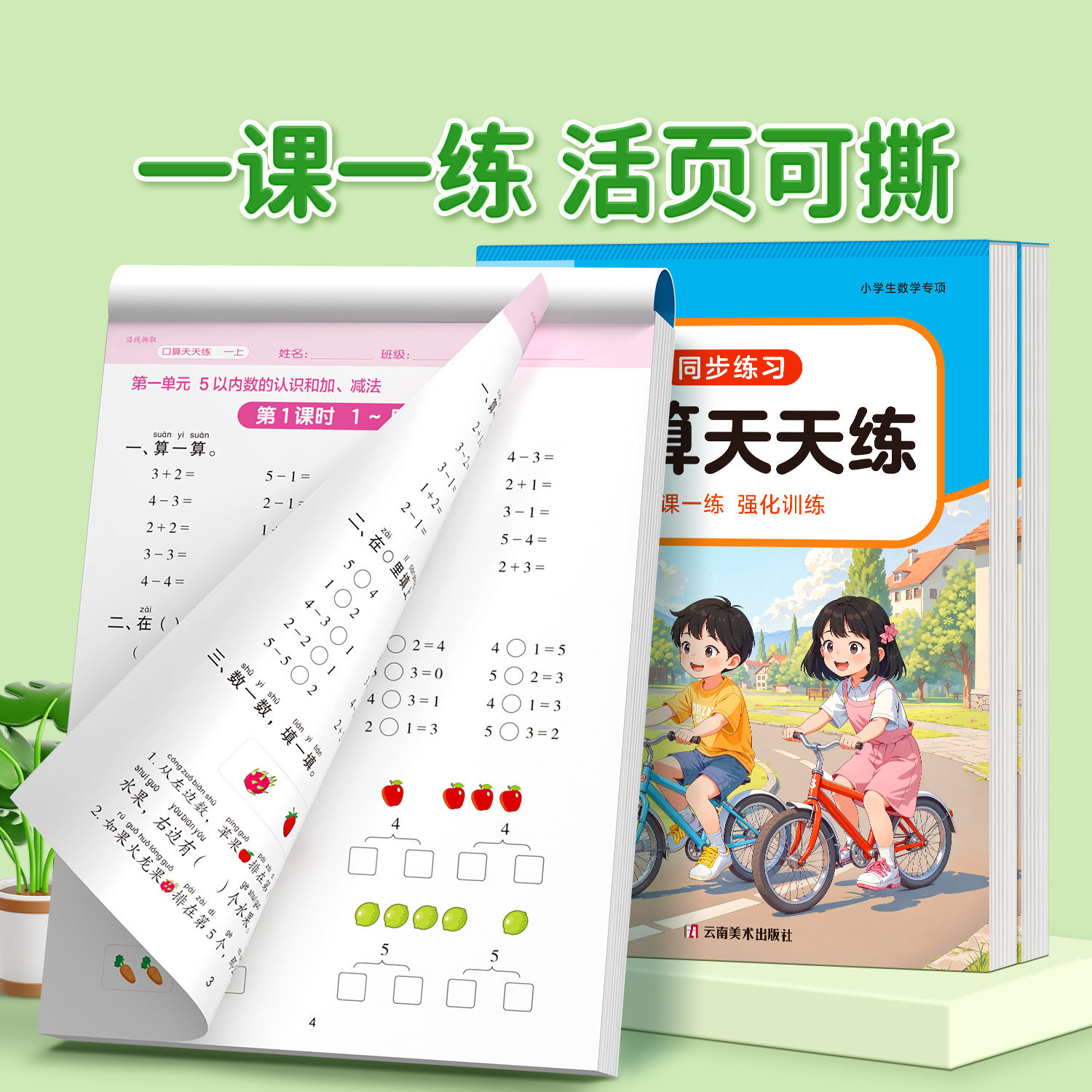 《一年级上册下册数学口算天天练》是一本专为小学低年级学生设计的口算专项练习册,与人教版数学教材同步,涵盖20以内及100以内的加减法运算。本书分为上下两册,每日一练,题型丰富,包括加减混合运算、连加连减、简单应用题等,注重夯实计算基础,提升运算速度和准确性。通过系统的思维训练,帮助孩子熟练掌握基本运算技巧,培养数感和逻辑思维能力。题目编排由易到难,循序渐进,适合课堂巩固与家庭练习使用,是提升小学生口算能力的实用工具书。