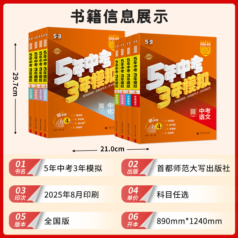 天猫2026五年中考三年模拟53中考总复习必刷题资料江苏专用数学语文物理英语化学政治历史地理生物会考九年级初三真题试卷练习题