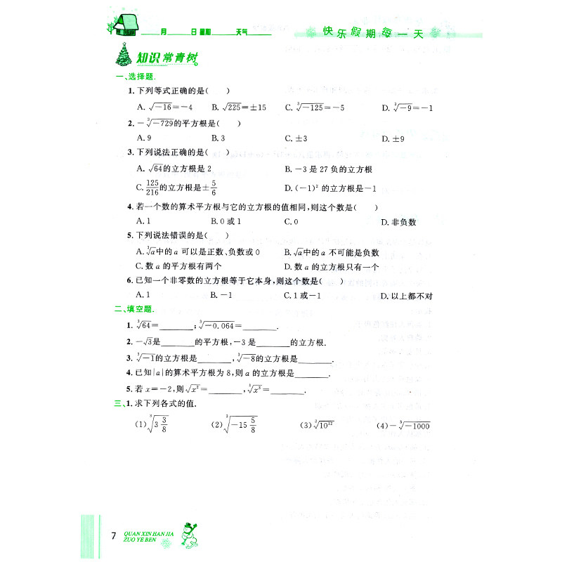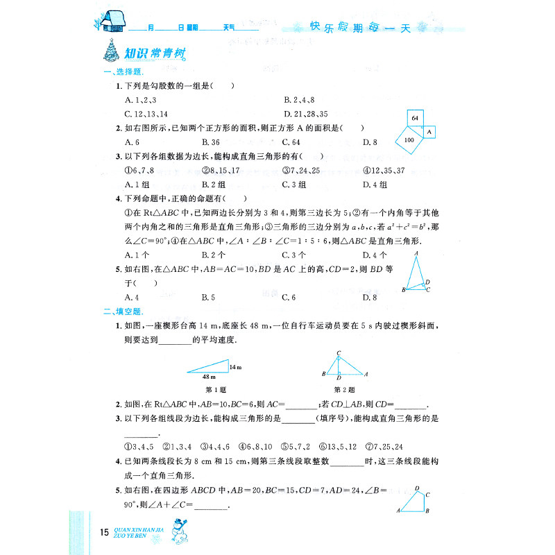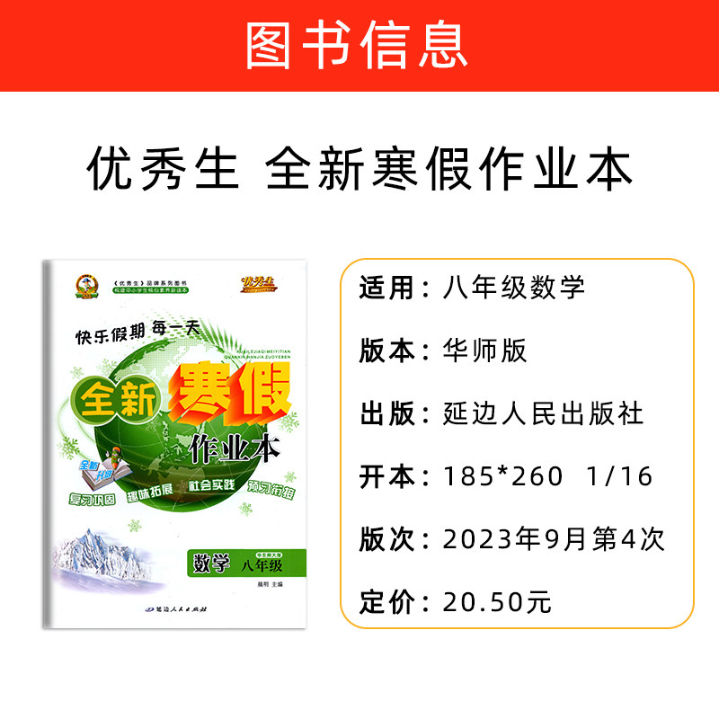 天猫2026春 全新优秀生初中生寒假作业八年级上册数学华师版快乐假期每一天8年级初二全新寒假衔接同步升级习题册复习巩固衔接拓展预习