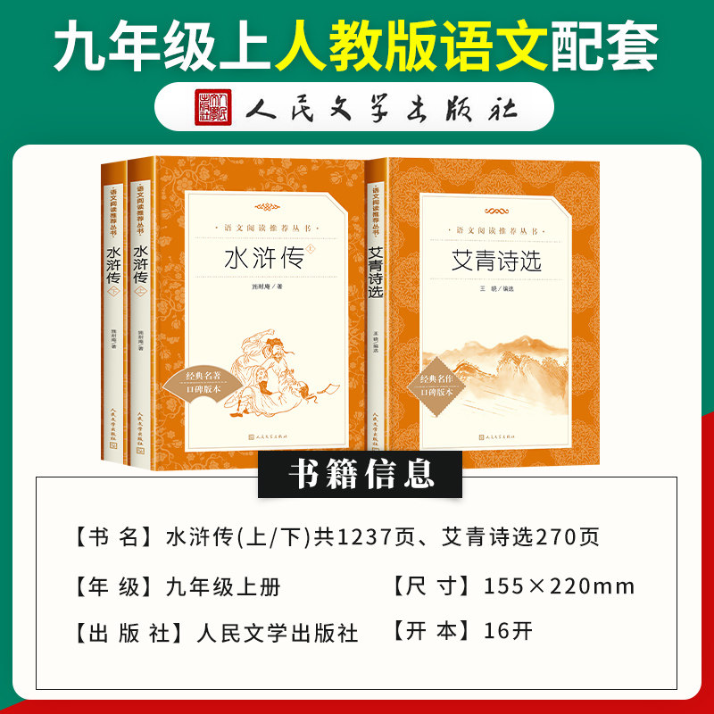 天猫【赠考点】水浒传九年级课外书必读下册人民文学出版社正版原著上册推荐初三课外书籍中国古典四大名著初中生无删减完整版五年级下