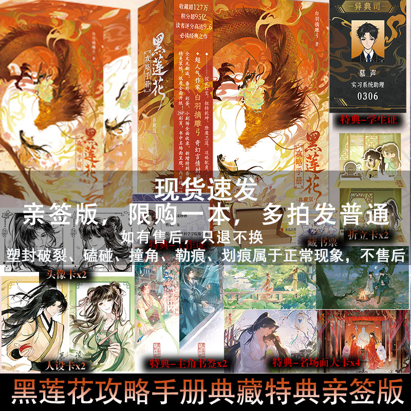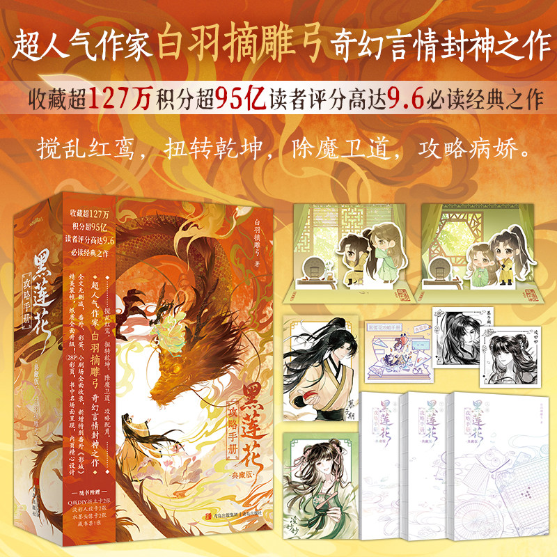 《黑莲花攻略手册(典藏版)》是白羽摘雕弓创作的穿书奇幻言情小说,讲述女主意外穿进一本狗血小说,成为恶毒女配,为活命不得不攻略书中偏执病娇的“黑莲花”男主。在除魔卫道的冒险中,她步步为营,用智慧与真心化解危机,也逐渐揭开男主深藏的秘密。作品融合悬疑、甜宠与成长元素,人物鲜活,剧情跌宕。典藏版特别收录番外与精美插画,【可选亲签版本】更添收藏价值。该书被誉为“反套路穿书文”代表作,情感细腻,反转不断,既满足少女心,又充满江湖侠义,是近年来不可多得的奇幻言情佳作。