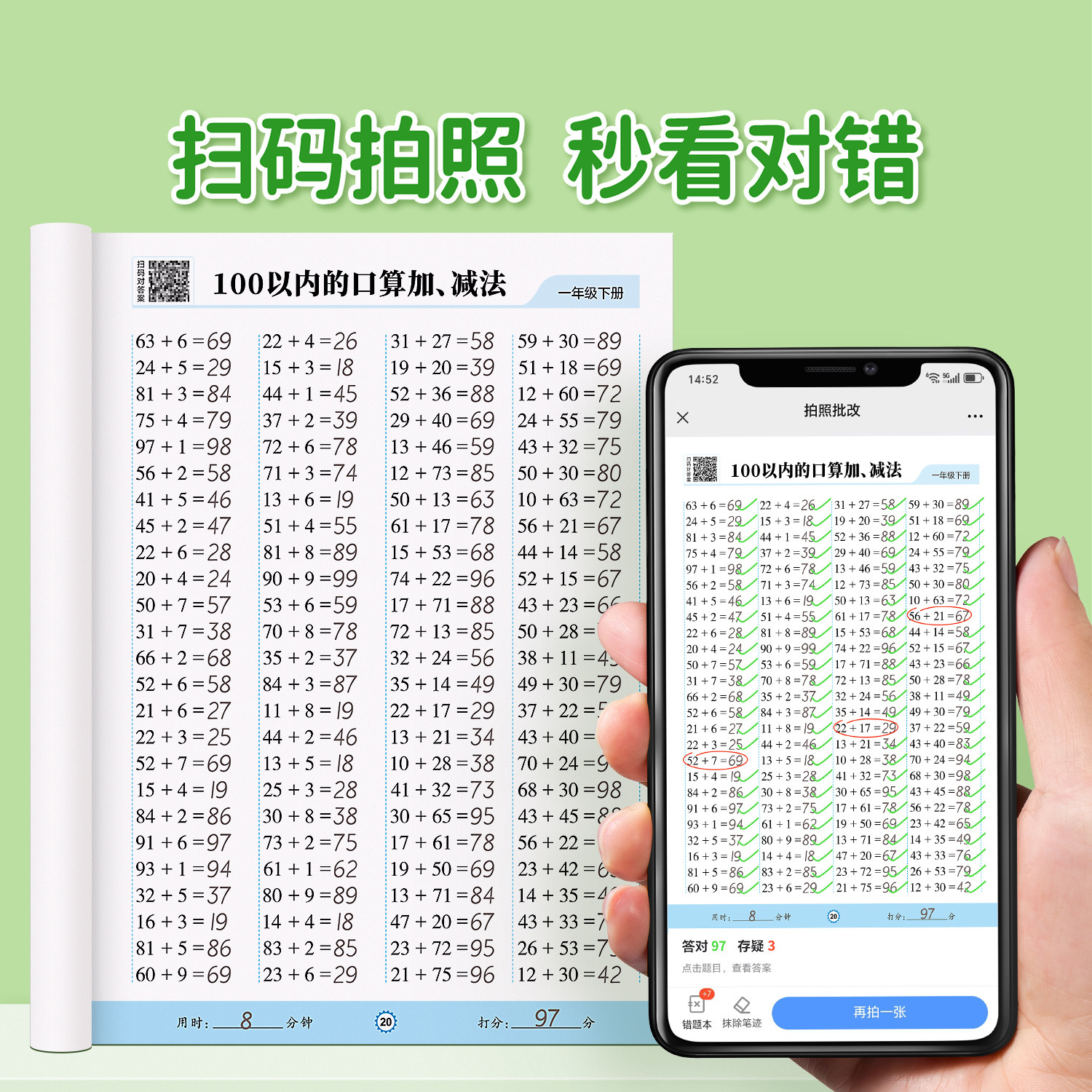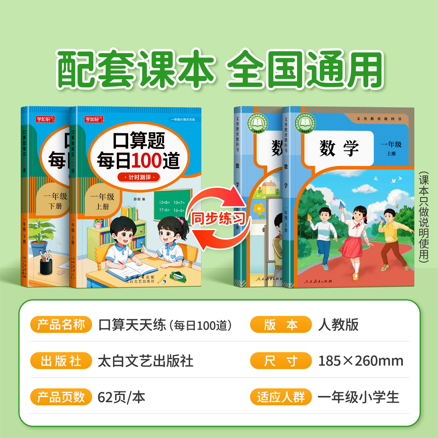 天猫一年级上下册数学口算天天练人教版数学课本同步口算题卡应用题每天一练20 100以内的加减法专项训练练习题册加减混合运算思维训练