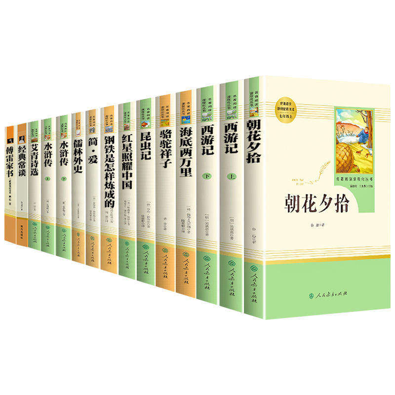人教版初中必读名著12本,涵盖七至九年级上下册,由人民教育出版社出版,是初中生语文学习的重要辅助读物。书目包括《简·爱》《儒林外史》《骆驼祥子》《钢铁是怎样炼成的》《昆虫记》《经典常谈》《水浒传》等经典作品,兼顾中外文学精华,兼具思想性、艺术性与教育价值。这些名著有助于学生提升阅读理解能力、拓展文化视野、培养人文素养。图书由新华书店正版发行,内容权威,编排科学,配有导读、注释和思考题,便于学生自主学习。整套丛书紧扣新课标要求,是初中生课外阅读的优质选择,助力语文素养全面提升。