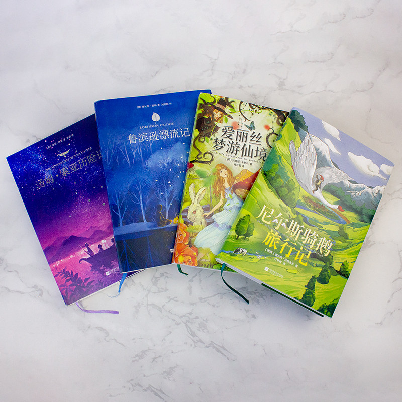 天猫正版精装|鲁滨逊漂流记+汤姆索亚历险记+尼尔斯骑鹅旅行记+爱丽丝漫游奇境原著中文完整版小学生六年级下册推荐课外阅读名著小说书