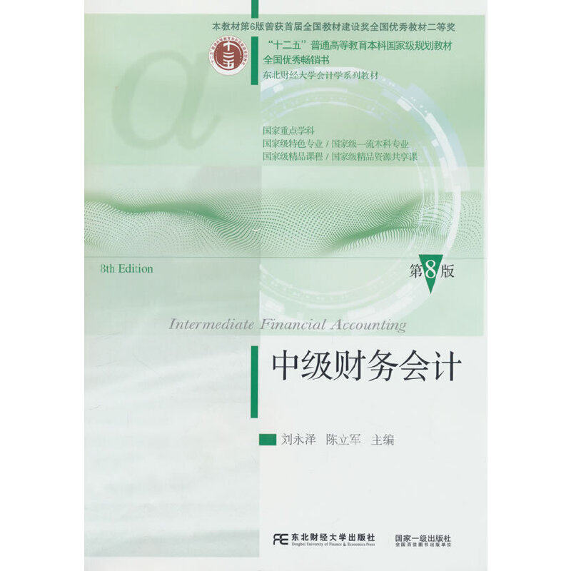 天猫中级财务会计第八8版教材+习题与案例 东北财经大学出版社十二五规划教材中级财务东财会计专业教材中级财务第8版刘永泽习题教材