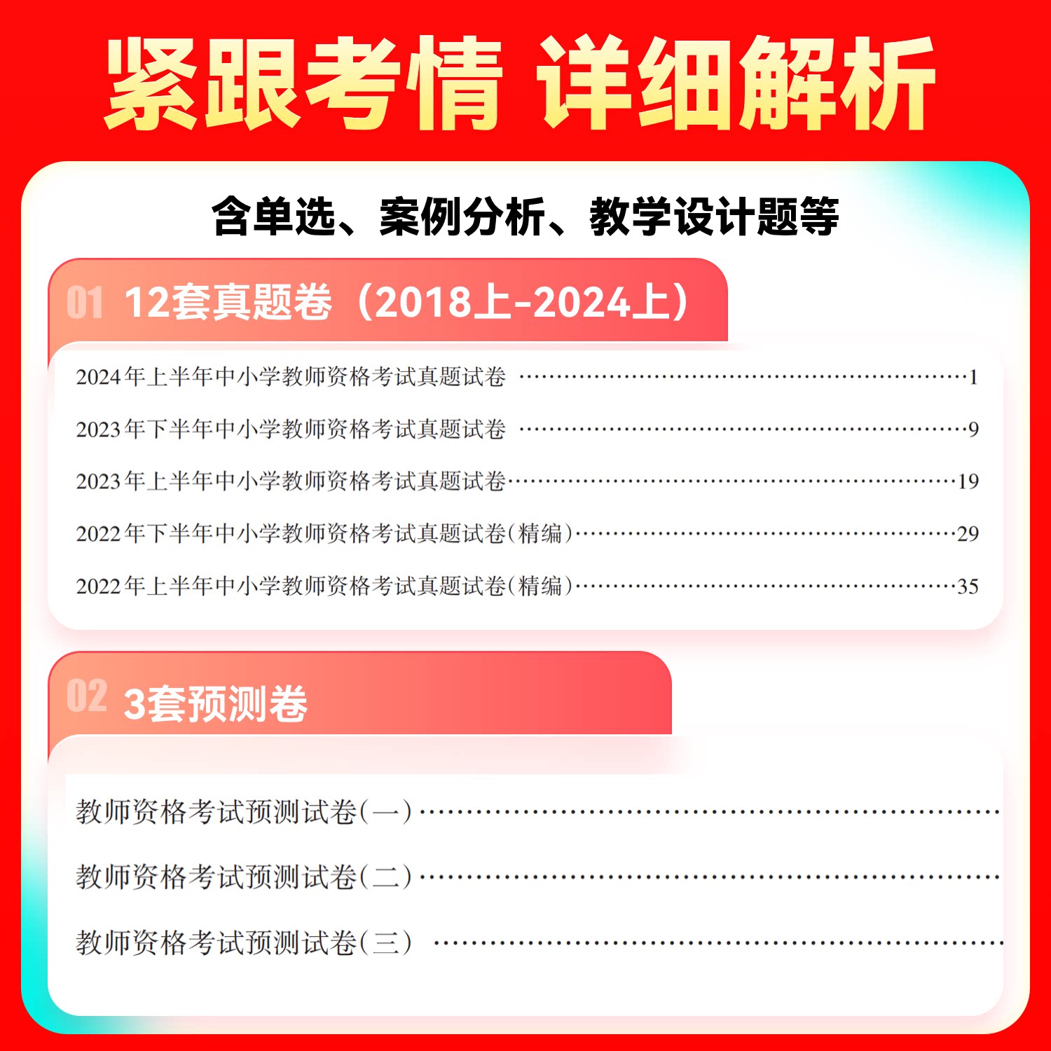 山香教育新版《国家教师资格证考试初中语文学科知识与教学能力》教材及《历年真题预测试卷》全2册,专为备考初中语文教师资格证考生精心编写。教材系统梳理语文学科核心知识,涵盖古代文学、现代文学、语言文字运用及教学设计等内容,紧扣最新考试大纲,重难点突出,配有典型例题与解析。真题卷精选近年考试真题,并附高质量模拟预测试卷,帮助考生熟悉题型、掌握答题技巧。全书结构清晰,讲练结合,注重理论与实践融合,助力考生高效备考,顺利通过笔试,是广大考生备考的权威辅导用书。