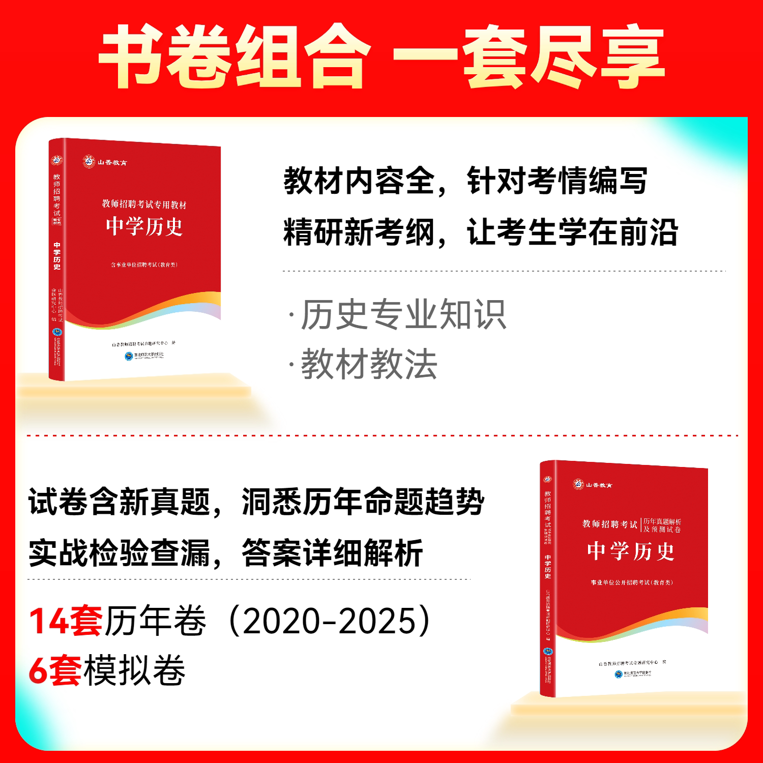 天猫山香教育2026教师招聘考试专用教材学科专业知识 中学历史教材和历年真题及押题试卷2本套装全国通用