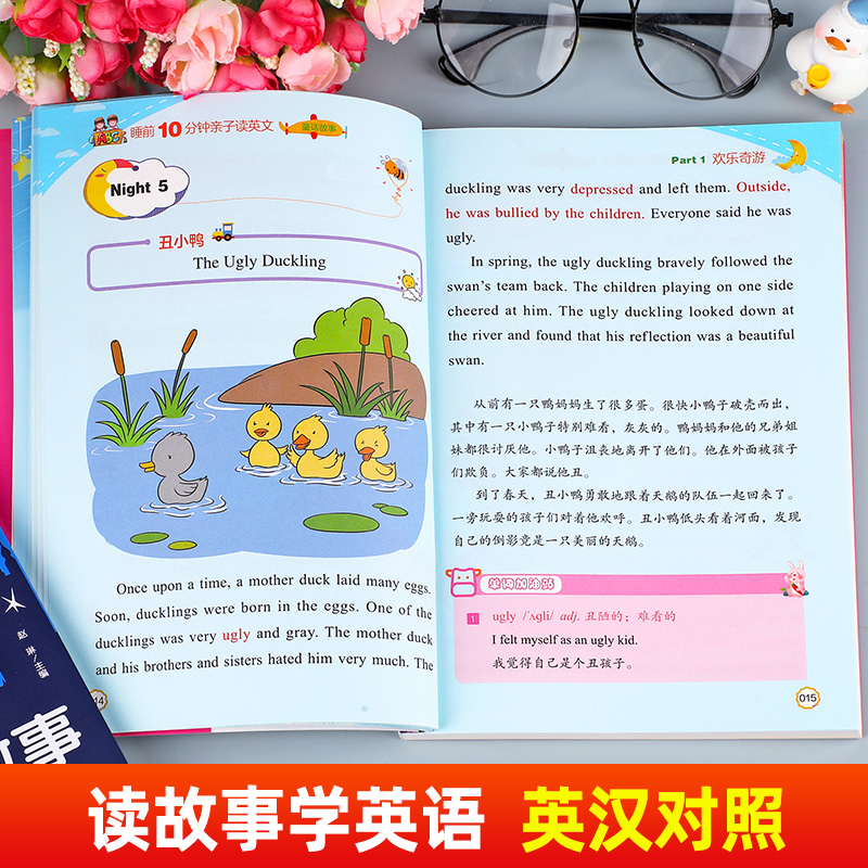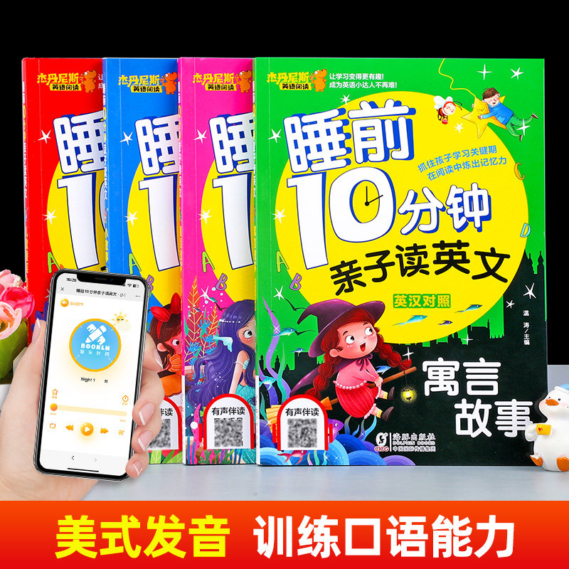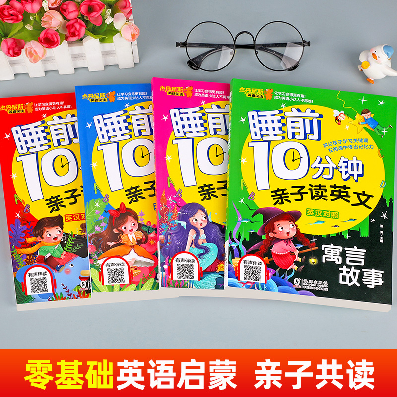 天猫【有声伴读】全套4册睡前10分钟亲子读英文 幼儿少儿英语阅读物3-6岁睡前小故事经典童话寓言故事书幼儿园早教启蒙幼小衔接学英语
