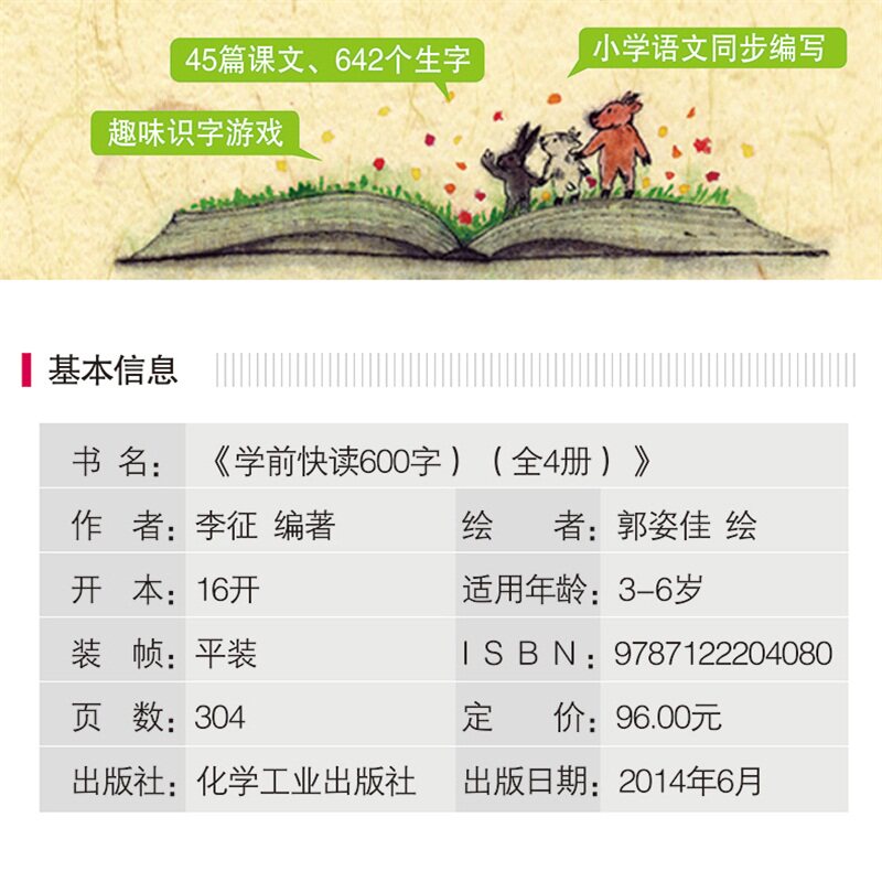 《学前快读600字》全套共4册,专为3-6岁幼儿设计,是广受家长信赖的识字启蒙与幼小衔接经典读物。通过科学分阶、循序渐进的方式,帮助孩子轻松掌握600个核心汉字,逐步实现从单字到短语、短句再到短文的过渡,有效培养自主阅读能力。书中图文并茂,内容贴近儿童生活,结合趣味游戏和互动练习,激发学习兴趣。每课配有朗读音频,便于跟读巩固。系统化的识字体系,不仅提升孩子识字量,更锻炼理解力与表达能力,为顺利过渡小学打下坚实基础。是家庭早教和幼儿园教学的优质选择。