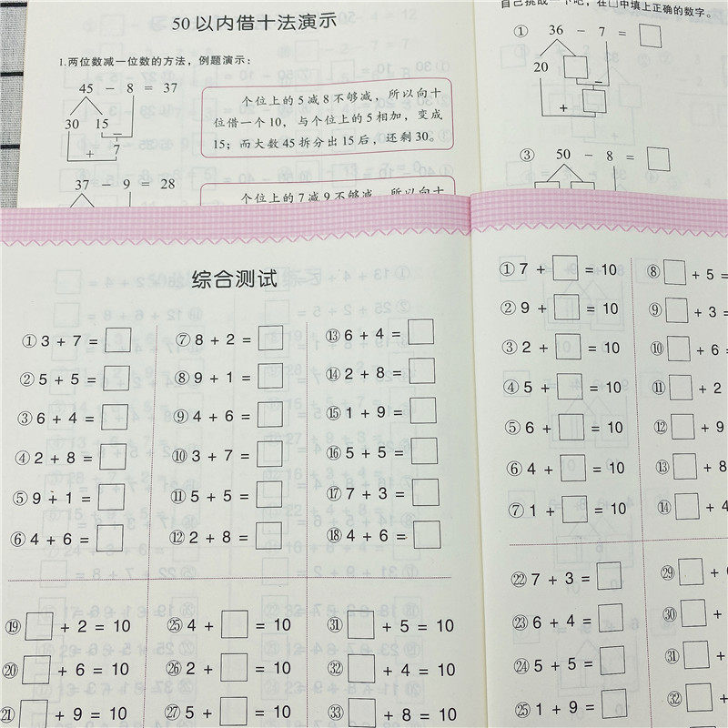天猫凑十法借十法分解与组成时间与人民币幼小衔接数学专项练习册数学题幼小衔接幼儿园大班学前数学思维训练算数低幼衔接爱德少儿