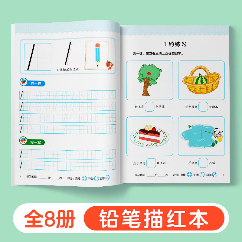 天猫爱德少儿幼小衔接铅笔描红8册数字1一10汉字英文字母偏旁部首笔顺描红幼儿描红天天练大班拼音描红3-6岁控笔训练字帖幼儿写字入门