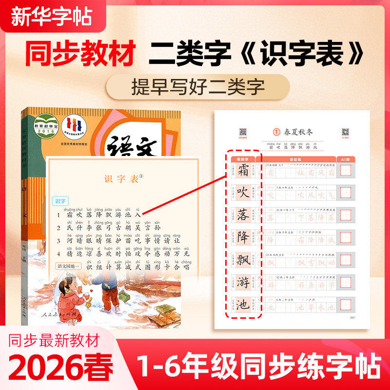《2026春新华书店新华字帖》专为小学一至六年级学生设计,同步下册语文课本写字表与识字表,科学划分一类字(会写)与二类字(会认),帮助学生规范书写、夯实基础。字帖采用标准硬笔楷书,笔顺清晰、结构规范,助力学生提早掌握二类字书写,提升书写速度与美观度。每课同步编排,一课一练,配合小学字典功能,便于查阅字形、读音与释义。内容紧贴教材,强化课内学习与书写训练结合,是学生课前预习、课后巩固的理想练字工具,有效提升汉字书写能力与语文综合素养。
