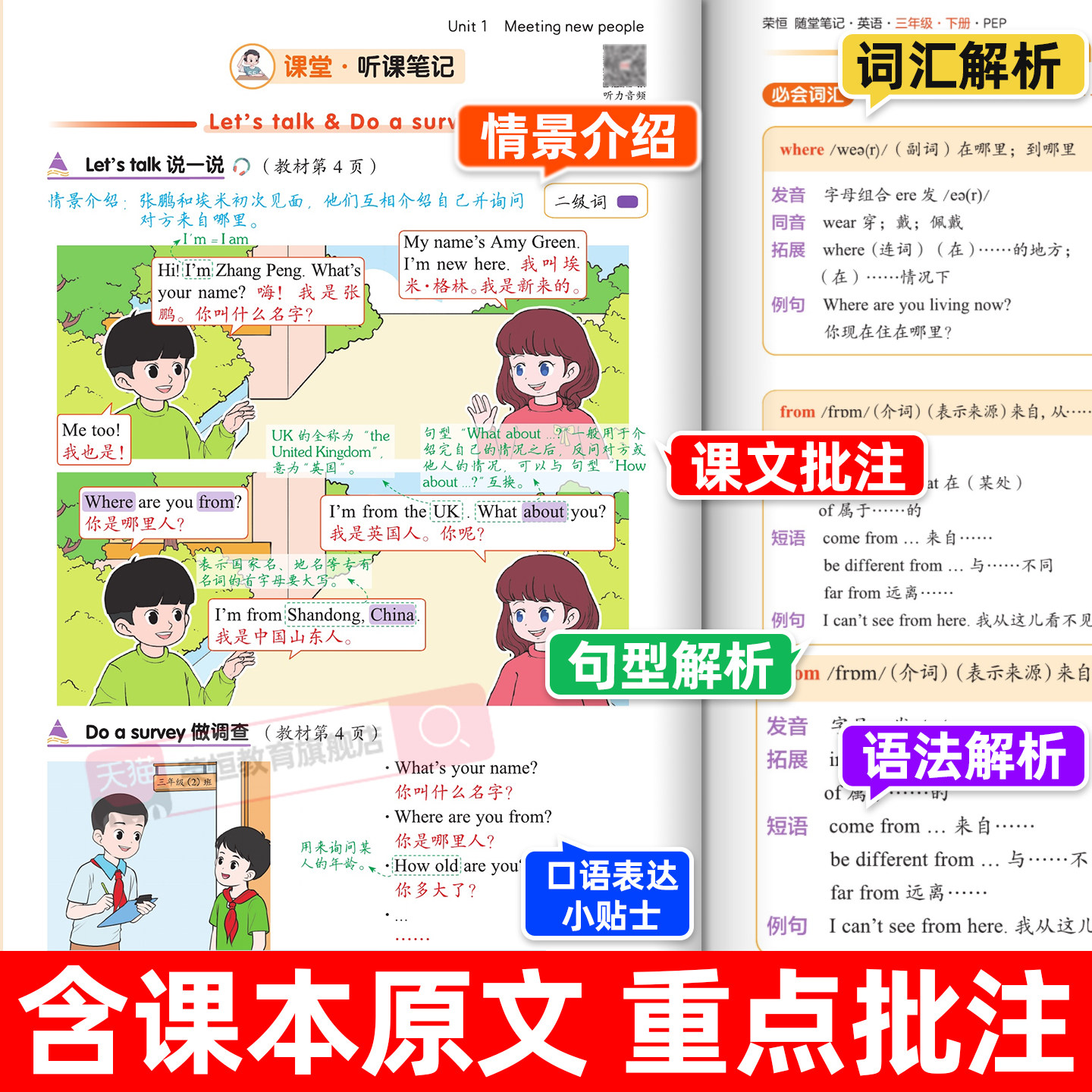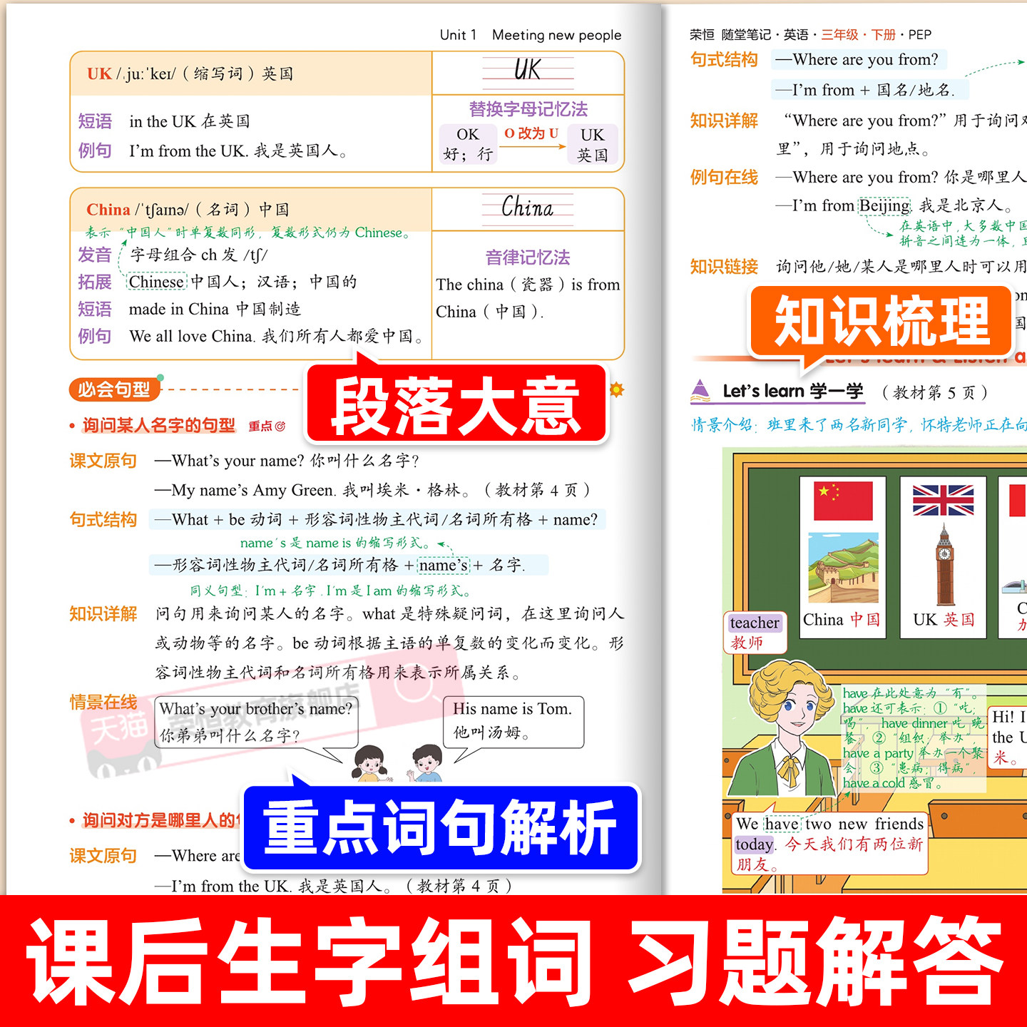 天猫2026新版英语课堂笔记三年级四年级五六年级下册课本同步小学三年级上下册英语课本新教材全解预习黄冈随堂笔记解读资料12月改版