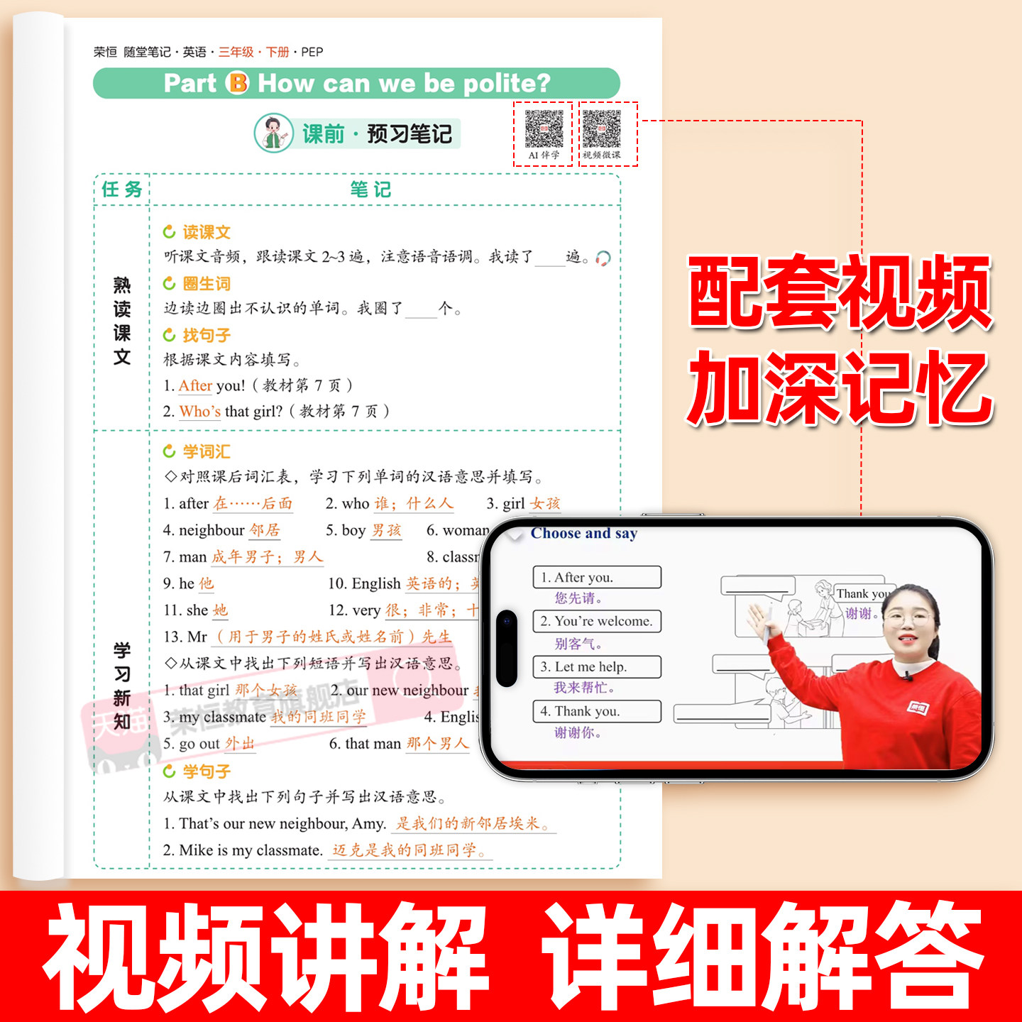 2026新版《英语课堂笔记》专为小学三至六年级学生设计,同步下册英语新教材,涵盖三年级上下册内容,全面适配最新课标要求。本书由黄冈名师团队精心编写,融合预习、随堂学习与课后巩固功能,系统梳理单元重点词汇、句型及语法知识,配有清晰图解与实用例句,帮助学生高效掌握核心内容。每课设置“知识精讲”“易错辨析”“拓展提升”等模块,强化理解与运用能力。12月改版新增情景对话与生活化练习,贴近实际语言运用,助力学生夯实基础、提升成绩,是小学生英语学习的高效辅导资料。
