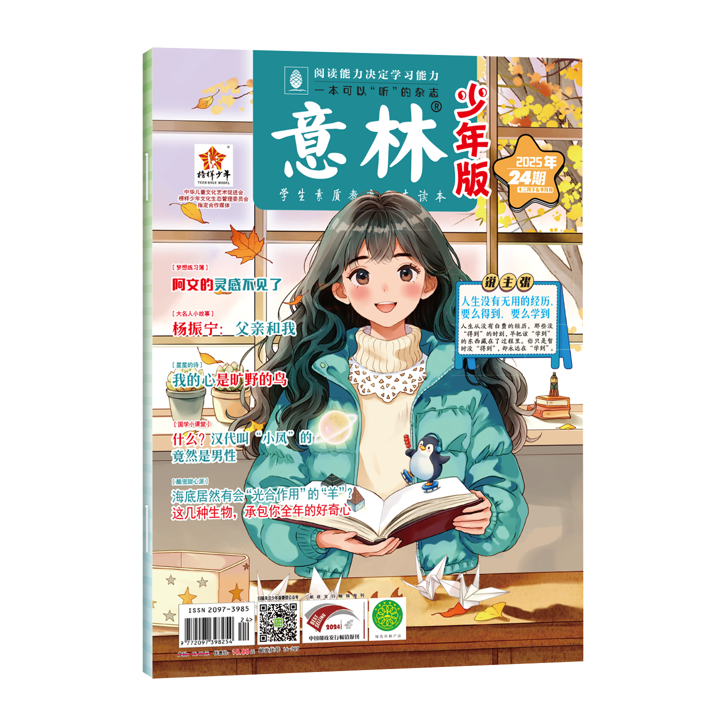 《意林·少年版》2025年19-24期(2025年10-12月)共6本,专为7-13岁中小学生精心打造,是官方正版课外阅读期刊。内容涵盖成长故事、科普知识、历史趣闻、校园生活与心灵启迪,语言生动活泼,图文并茂,兼具趣味性与教育性。每期精选优质文章,帮助孩子在轻松阅读中拓宽视野、提升写作能力、培养积极品格。作为深受家长与学校信赖的青少年读物品牌,《意林·少年版》坚持传递正能量,助力孩子全面发展。适合家庭订阅或校园推广,是孩子课外阅读的理想选择。