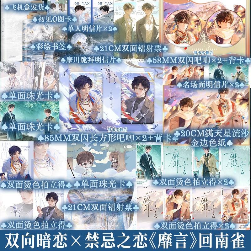 《靡言》是回南雀创作的双男主实体小说,讲述两位主角在禁忌关系中悄然滋长的双向暗恋。故事围绕“印绘签版”这一独特设定展开,将艺术、秘密与情感交织,勾勒出克制却浓烈的情感张力。主角身份特殊,情感在隐忍与渴望间拉扯,既有青春的悸动,也背负现实的沉重。书名“靡言”寓意无声胜有声的爱意,细腻笔触描绘出禁忌之恋的唯美与痛楚。实体书装帧精美,附赠印绘签章,极具收藏价值。作品融合“享学”元素,在情感叙事中融入对艺术与成长的思考,是一部兼具文学性与情感深度的佳作,深受双男主文爱好者推崇。