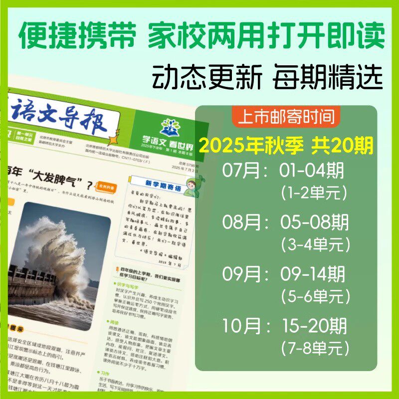 《小学语文导报》《快乐学习报》《少年报》等优质报刊,专为1-6年级小学生及初高中学生打造,2025秋至2026春全年订阅涵盖上下册内容,紧扣课标,同步教材。报纸融合课前预习、同步阅读与拓展知识,注重“大语文”素养培养,通过趣味故事、经典诵读、写作指导和百科知识,激发学习兴趣,提升阅读理解与表达能力。图文并茂,寓教于乐,是学生课外学习的得力助手,也是家长和教师信赖的语文学习资源,助力孩子夯实基础、拓宽视野,快乐成长。