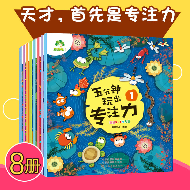 天猫宝宝早教书5五分钟玩出专注力 幼儿早教书籍爱德少儿三岁孩子四岁五岁六岁提高3岁4岁5岁6岁孩子记忆力儿童育儿专注力注意力训练书