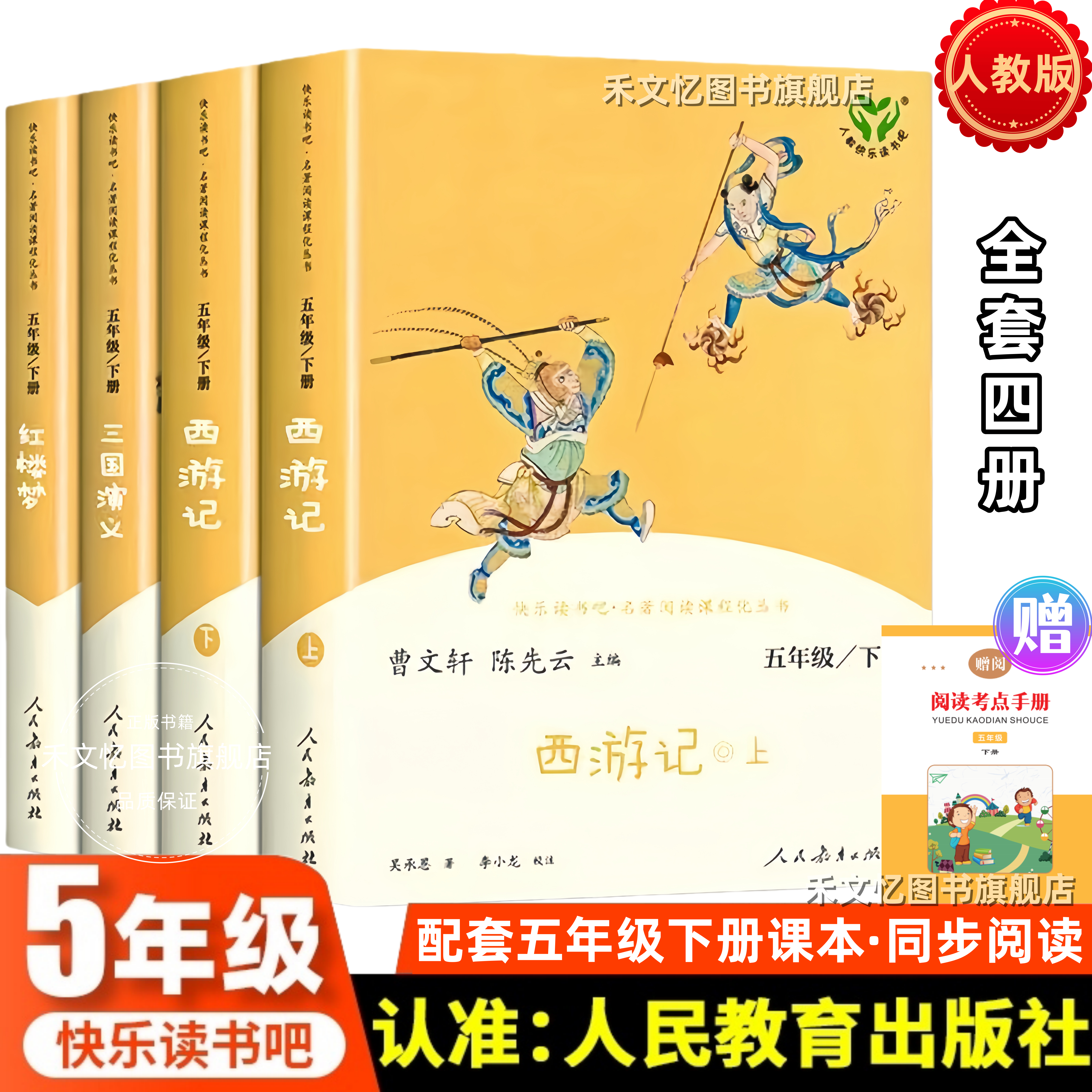 天猫快乐读书吧五年级下册全套4册人教版西游记上下册+三国演义+红楼梦四大名著原著正版人民教育出版社小学生必读课外书曹文轩陈先云5