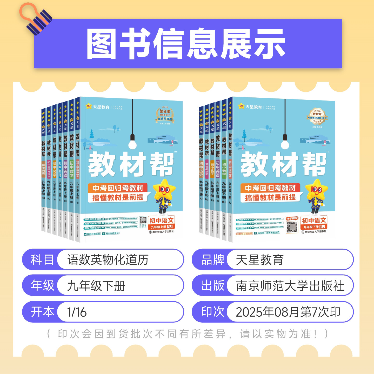 天猫2026春初中教材帮七八九年级下册上册语文数学英语政治历史地理生物化学物理人教版初一初二三同步课本全套教材解读全解作业帮辅导