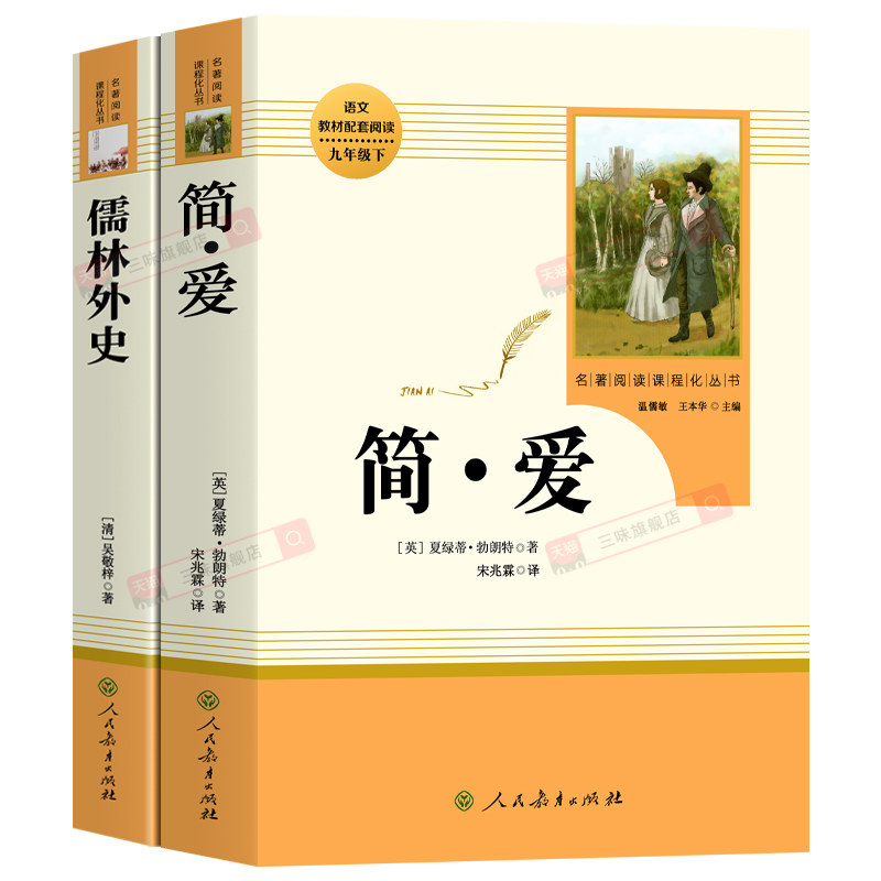 天猫人教版原著正版 简爱和儒林外史九年级必读书名著人民教育出版社完整版无删减初三中学生版9语文课本上下册唐诗三百首课外阅读书籍
