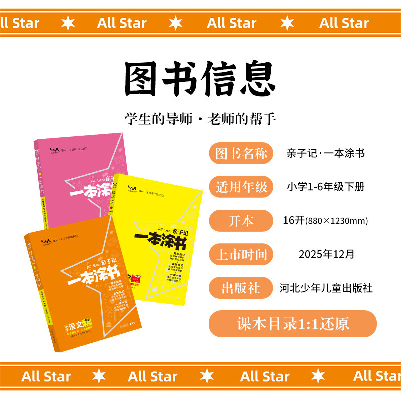 《单科任选26版一本涂书亲子记》是一套专为小学1-6年级学生设计的同步辅导资料,涵盖语文、数学、英语三科,分上下册,完全匹配人教版教材。本书融合“学霸笔记”与“完全解读”理念,以图文并茂、重点突出的方式梳理课本知识点,配有典型例题解析和分层练习题,帮助学生夯实基础、提升能力。特别设置“亲子共学”板块,引导家长有效参与学习过程,增强家校互动。内容精炼实用,题型丰富,适合课前预习、课后复习及阶段性检测,是小学生自主学习、家长辅导的理想工具书,助力孩子轻松掌握重点难点,稳步提升学业成绩。