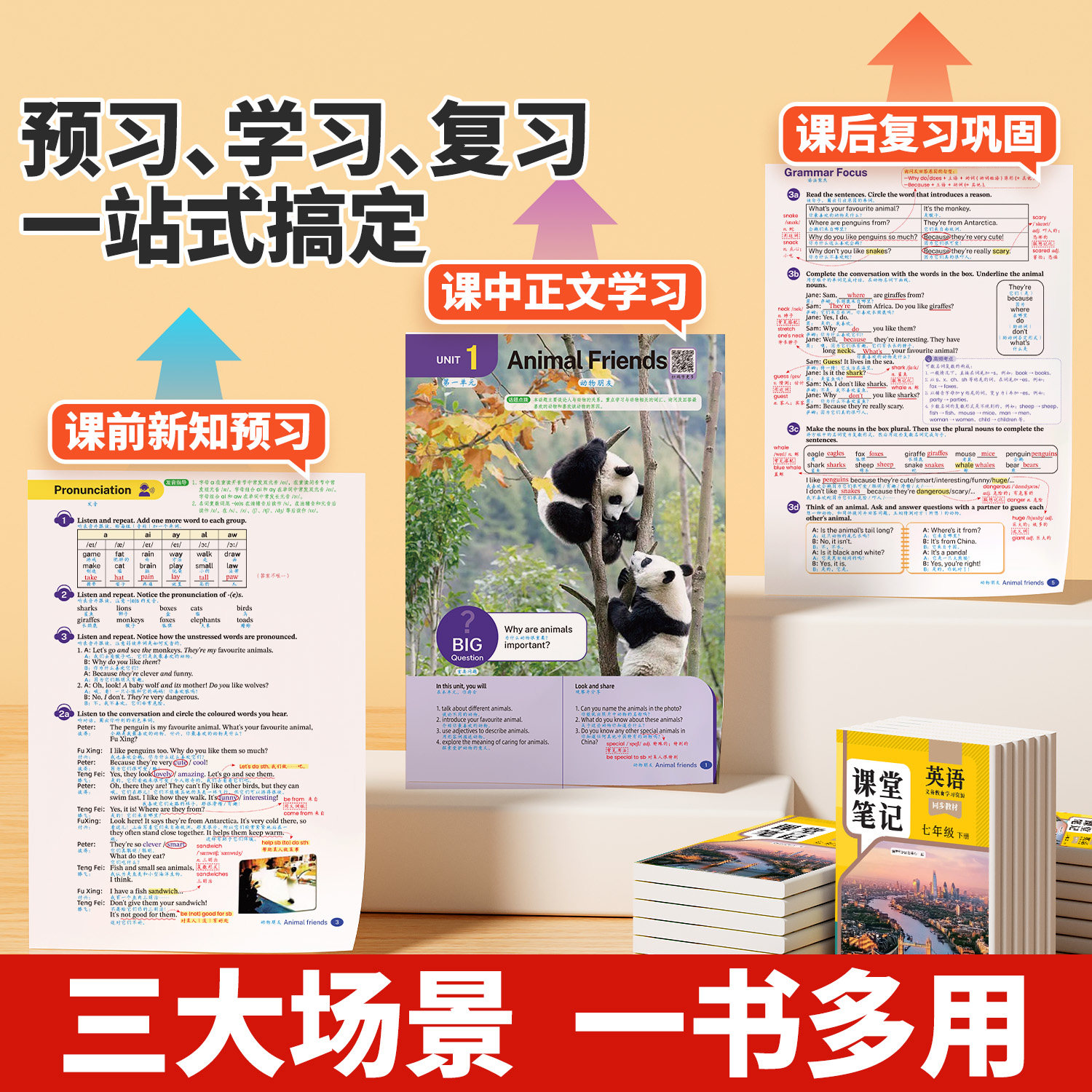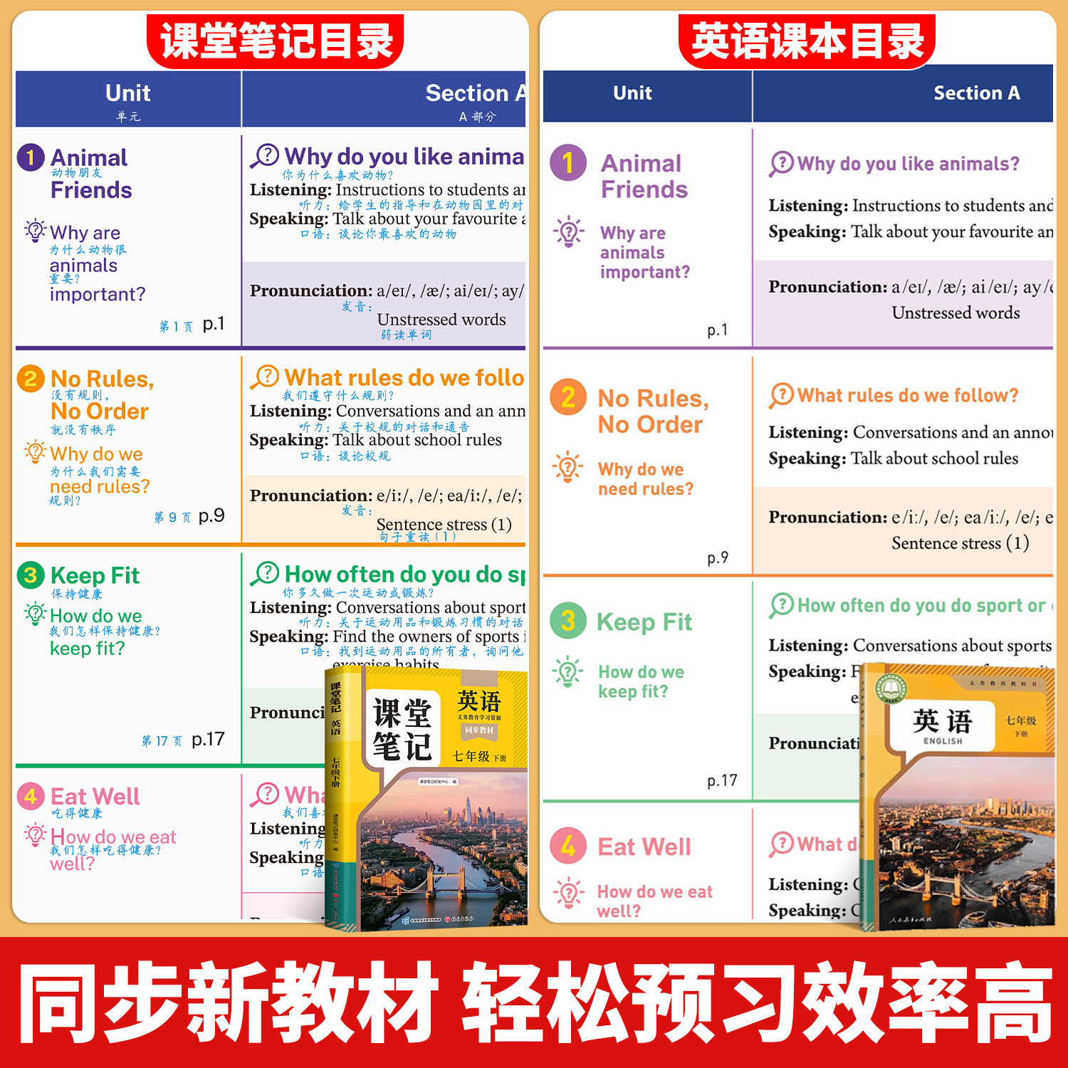 天猫斗半匠2025新版课堂笔记七年级上册下册英语新教材人教版外研版同步初一预习教辅学期中学七上教科书讲解读英语书课本知识点总结