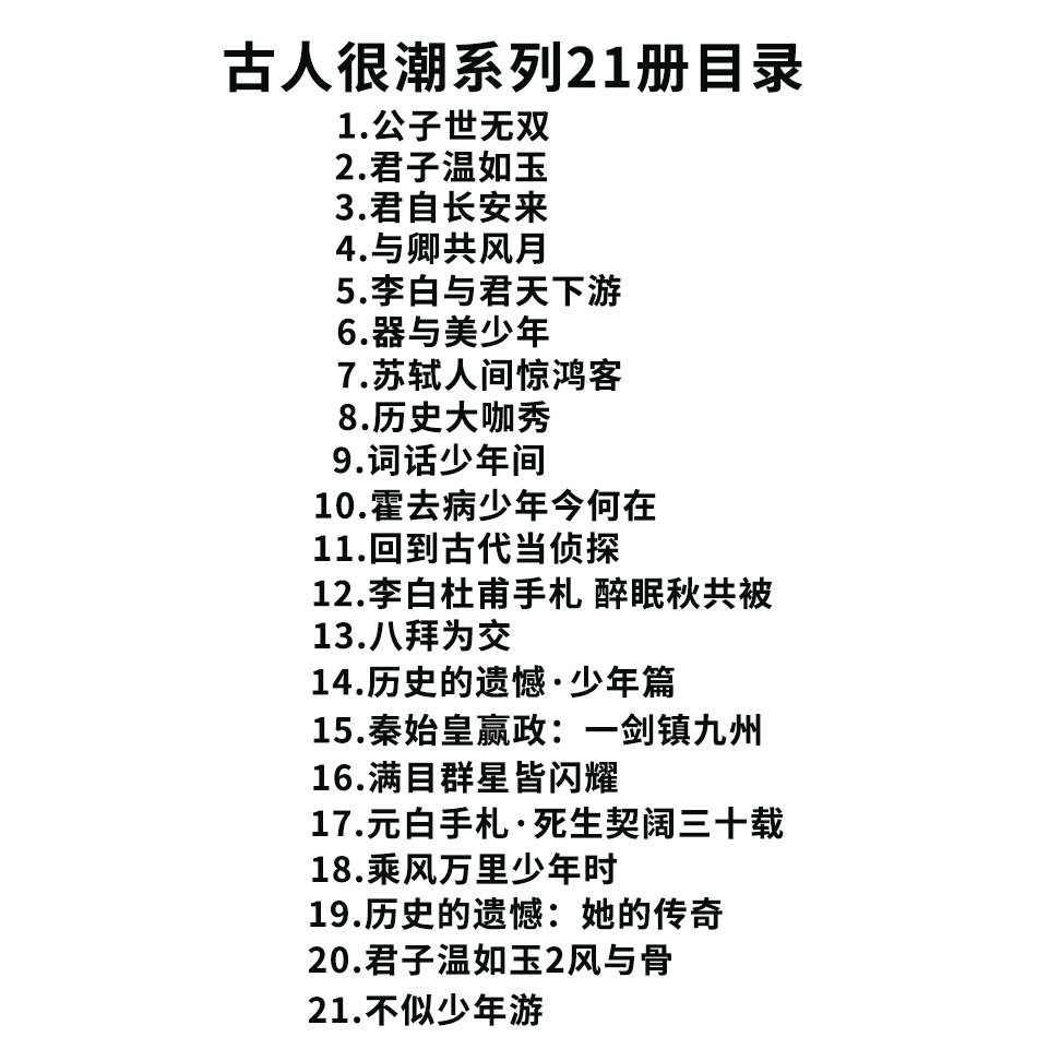 正版古人很潮系列是一套共20本的系列小说,以古代美男为主题,包括《君自长安来》、《人间惊鸿客》、《落花逢词话》、《少年间》等。该系列以独特的视角展现古代美男的魅力,讲述他们风流潇洒的生活与感人肺腑的故事。每本书都以优美流畅的文字描绘出一个令人陶醉的世界,其中人物鲜活、场景生动。此外,《公子温如玉》、《世无双》等书籍融合了国风元素和守护手串的设定,更显特色和魅力。这套小说适合喜欢古风美男的读者阅读,让人沉浸在美妙的文学世界中。