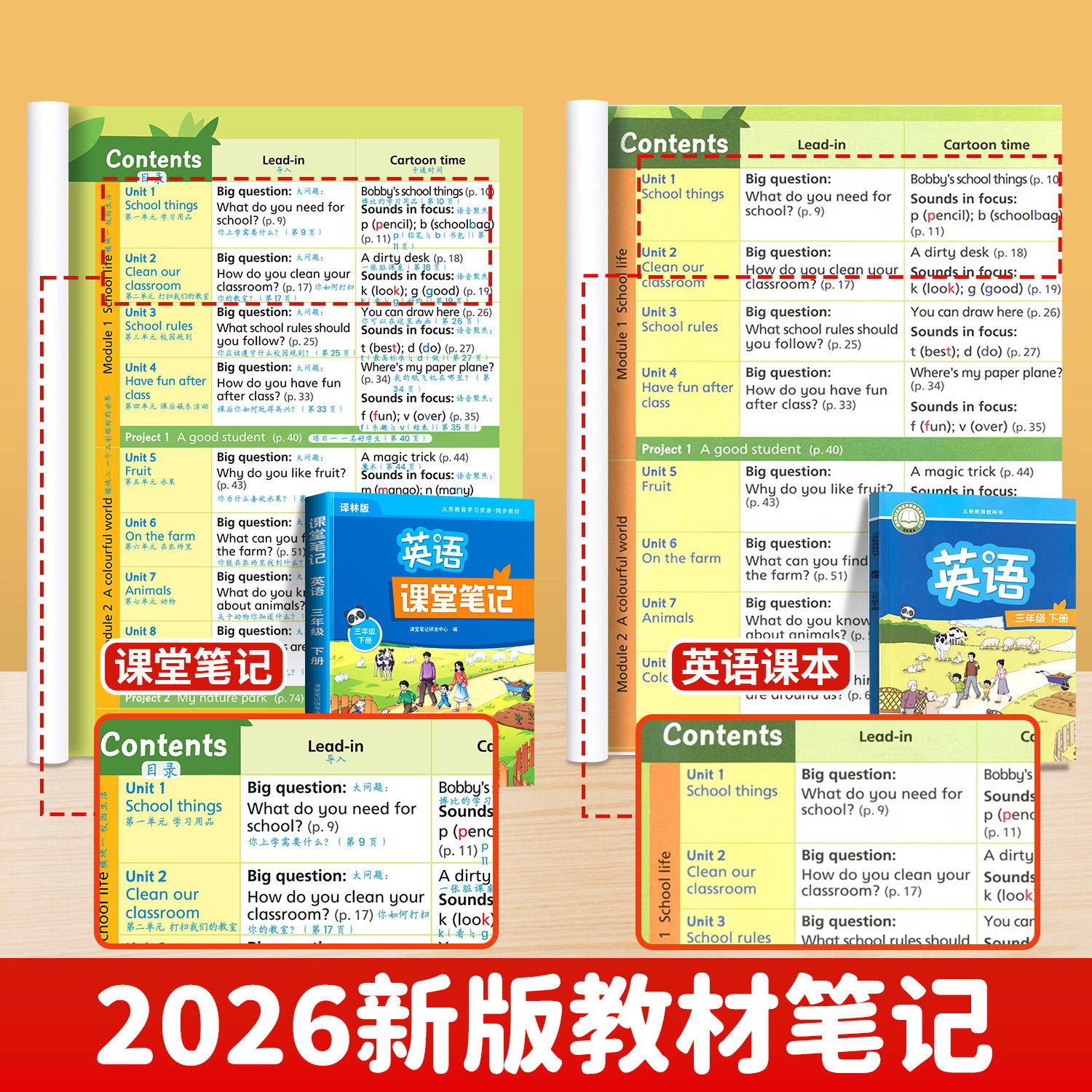 2026年新版译林版《英语课堂笔记》三年级下册,紧扣最新教材同步改版,专为江苏地区小学生设计。本书全面覆盖三下课本知识点,结构清晰,重点突出,融合词汇、句型、语法与听力训练,助力学生夯实基础。配备随堂练习与预习导学模块,帮助学生课前高效预习、课中精准笔记、课后巩固提升。内容编排科学,图文并茂,贴合小学生认知特点,是《小学学霸》系列优质学习资料之一。适用于译林版英语教材使用者,是提升英语学习效率、培养良好学习习惯的得力助手,助力孩子轻松领跑课堂,稳步提升英语综合能力。