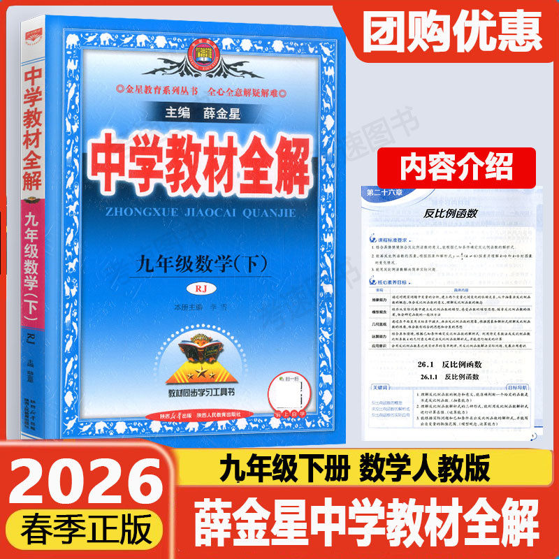 《2026春薛金星中学教材全解》是一套全面覆盖七、八、九年级上册下册的同步教辅丛书,涵盖语文、数学、英语、科学、历史、道德与法治、地理等学科,适配人教版、浙教版、华师大版、外研版等多种主流教材版本。本书紧扣新课标要求,系统梳理教材知识点,注重基础夯实与能力提升相结合,配有典型例题解析、重难点突破及同步练习,帮助学生深入理解课本内容,提升学习效率。编排科学,讲解详尽,是中学生课前预习、课堂学习和课后复习的理想工具书,助力学生夯实基础、稳步提分。