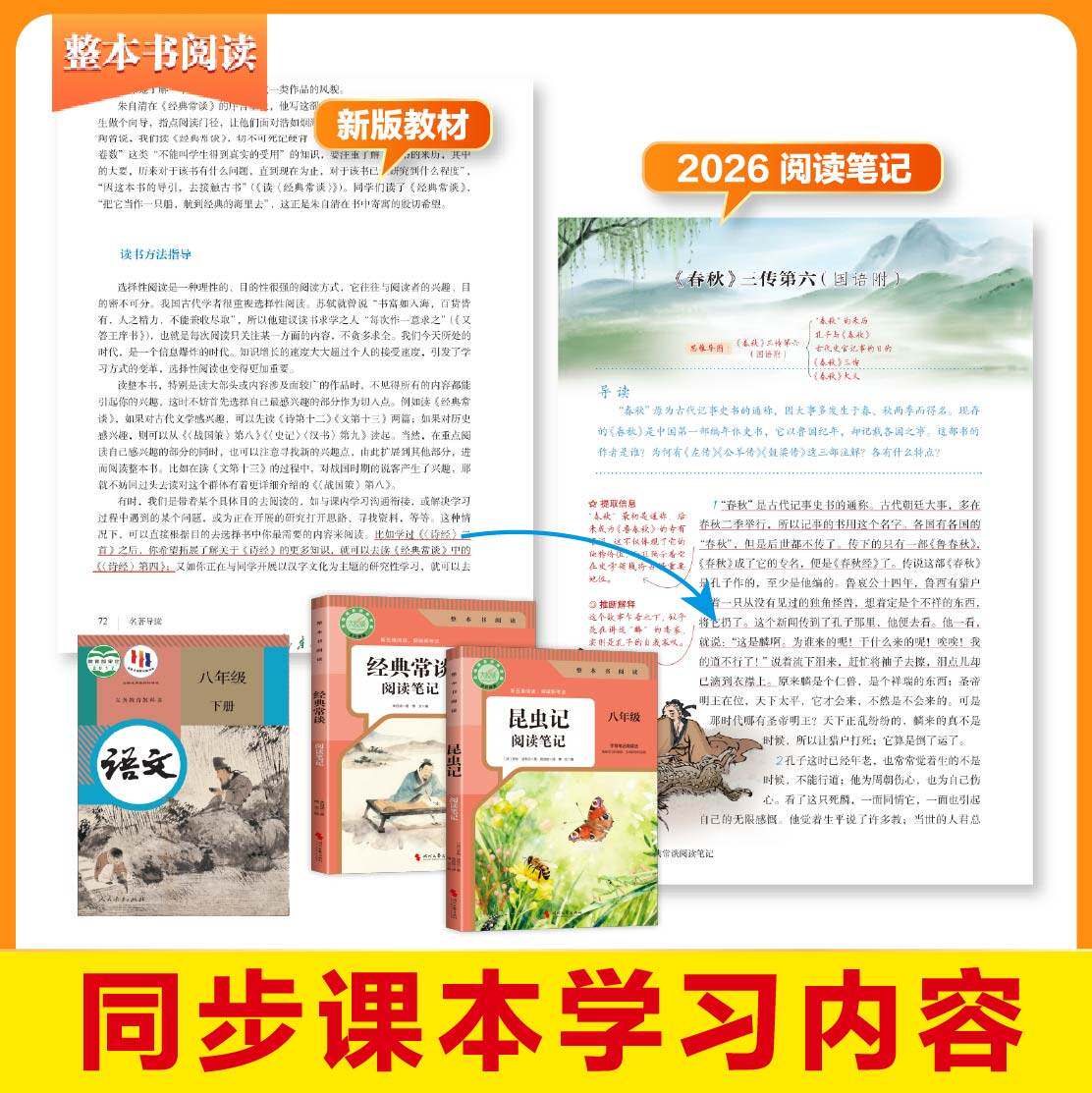 《2026新版昆虫记》与《经典常谈》是八年级下册语文教材指定的必读名著,均为正版原著、无删减完整版,严格遵循人教版教学要求。其中,《昆虫记》由法国昆虫学家法布尔撰写,以生动笔触描绘昆虫世界,兼具科学性与文学性;《经典常谈》为朱自清先生所著,系统介绍中国古代文化典籍,语言通俗,深入浅出。本套书配有同步课堂笔记与阅读指导,帮助学生理解重点、梳理脉络,提升阅读能力。适合初中生课外拓展与课内学习使用,是提升语文素养、备战中考的理想读物。