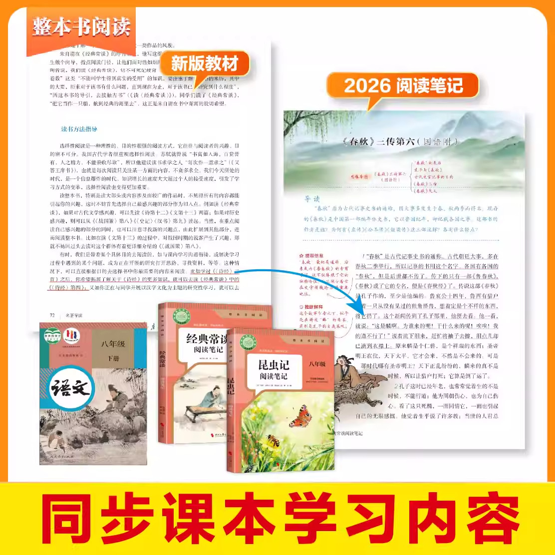 《2026新版昆虫记》与《经典常谈》是八年级下册语文教材指定必读名著,均为正版原著、无删减完整版,严格依据人教版课程标准编写。其中,《昆虫记》以生动笔触展现昆虫世界的奥秘,兼具科学性与文学性;《经典常谈》则系统梳理中华传统文化经典,帮助学生理解国学精髓。本书配套阅读笔记与考点默写,紧扣教材重点,助力学生夯实基础、提升阅读能力。内容权威,编排科学,是初中生课内外阅读与备考的理想读本,有效衔接课堂教学与考试要求,全面提升语文素养。