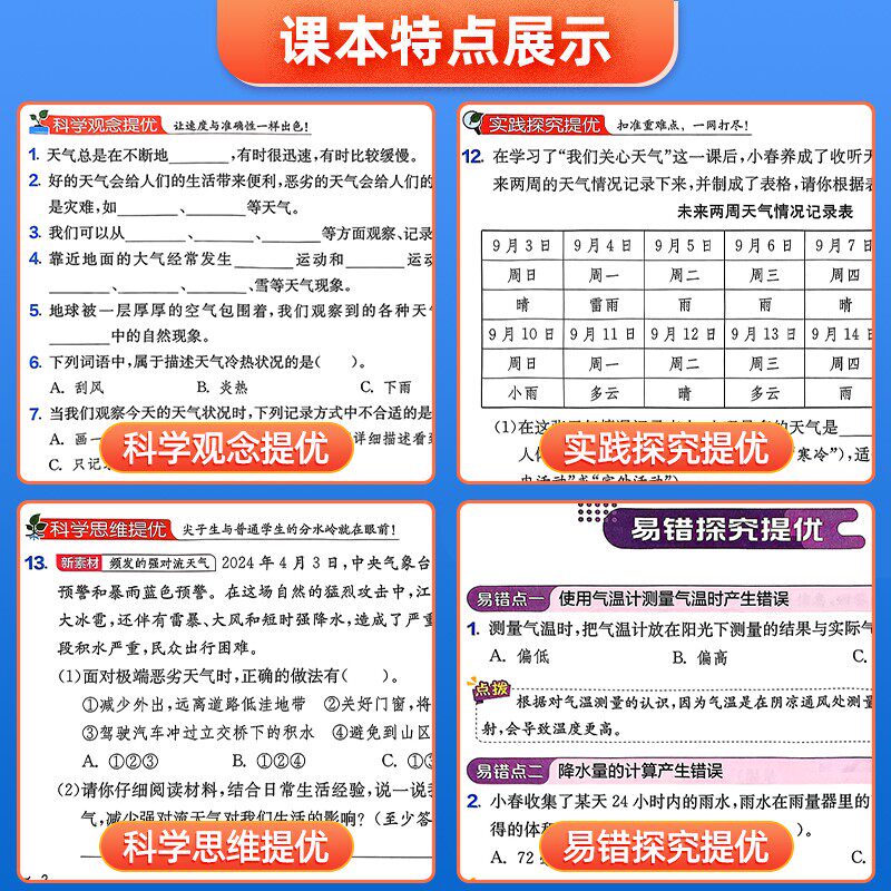 《2026实验班提优训练·科学》是专为小学三至六年级学生设计的一套同步练习册,紧密配合教科版科学教材,覆盖上下册全部内容。本书按单元和课时编排,题型丰富,涵盖基础巩固、能力提升与拓展探究,帮助学生夯实知识、提升科学素养。每课配有针对性训练,单元末设置达标测试,全面检测学习效果。题目设计注重实践性与探究性,契合新课标理念,适合课堂练习、课后巩固及阶段性复习使用。作为教材的优质配套资源,本书助力学生系统掌握科学知识,培养科学思维与动手能力,是提升学业水平的得力助手。
