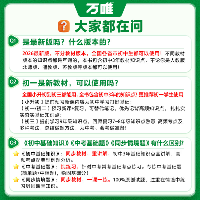 天猫2026万唯中考基础知识小四门初中知识点必背人教版小四门七八九年级上册课本全套语数英物化生地道历9科全套中考复习资料万维教育