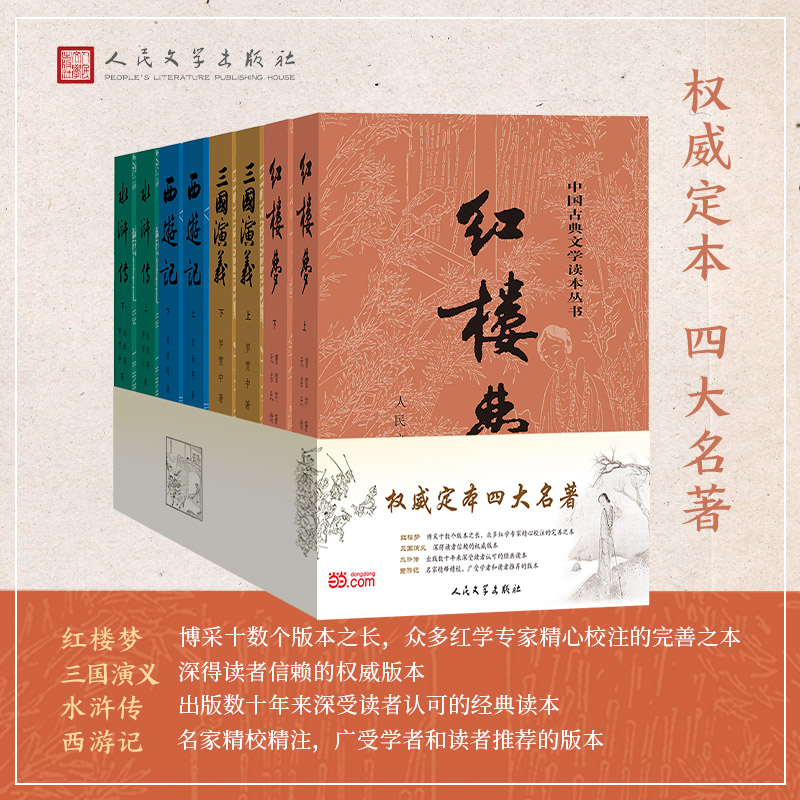 天猫当当网 四大名著全套原著正版共8册 人民文学出版社足本无删减红楼梦三国演义水浒传西游记初中生课外阅读书籍人民文学出版社人教