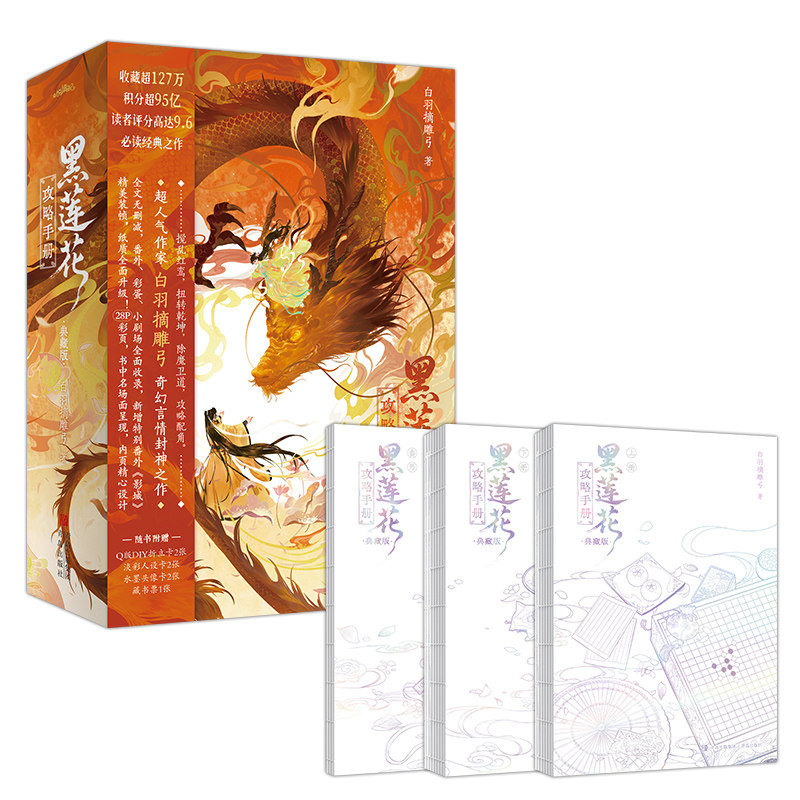 《印特签共享刷边黑莲花攻略手册》再版典藏版全三册,由白羽摘雕弓倾心打造,是近年来奇幻言情领域的封神之作。小说融合除魔卫道与古风浪漫,讲述女主穿越异界,以智慧与勇气周旋于病娇男主之间,步步为营、反转不断。作品文笔细腻,人设鲜明,情感张力十足,将“黑莲花”式女主与偏执病娇男主的博弈刻画得淋漓尽致。典藏版采用印特签工艺,刷边设计精美,极具收藏价值。不仅是古言爱好者不可错过的佳作,更被誉为“攻略系”言情小说的巅峰典范,值得反复品读。