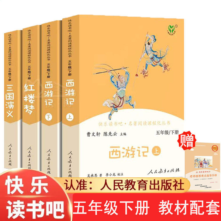 《西游记》《红楼梦》《三国演义》《水浒传》是人教版“快乐读书吧”五年级下册推荐阅读的四大名著青少年版,由人民教育出版社出版。该套书精选原著精华,语言通俗易懂,配以精美插图和注释,帮助小学生轻松理解经典内容。每本书在保留原著精神的基础上,适当简化情节、规范用词,更符合青少年阅读习惯。通过孙悟空的神通广大、诸葛亮的智谋、林黛玉的多愁善感、宋江的忠义等鲜活人物,孩子们不仅能感受中华优秀传统文化的魅力,还能提升阅读能力与人文素养。这套正版青少年版四大名著,是小学阶段必读的经典课外读物,助力孩子爱上阅读,传承文化。