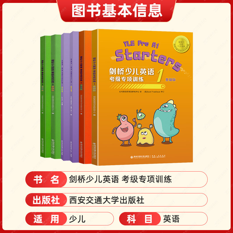 全新正版《剑桥少儿英语考级专项训练》专为小学阶段英语学习者设计,涵盖一级(Starters)、二级(Movers)、三级(Flyers)三个级别,分基础版与强化版,循序渐进提升听说读写综合能力。本书精选剑桥少儿英语考试真题,搭配专项练习题,全面覆盖考试要点。每单元配备扫码听音频功能,纯正英音朗读,助力听力训练与口语模仿。内容编排科学,题型贴近真实考试,帮助孩子夯实基础、突破难点,轻松应对考级。适合小学生日常练习与考前冲刺,是提升英语水平的权威辅导资料,助力孩子自信通关剑桥少儿英语考试。