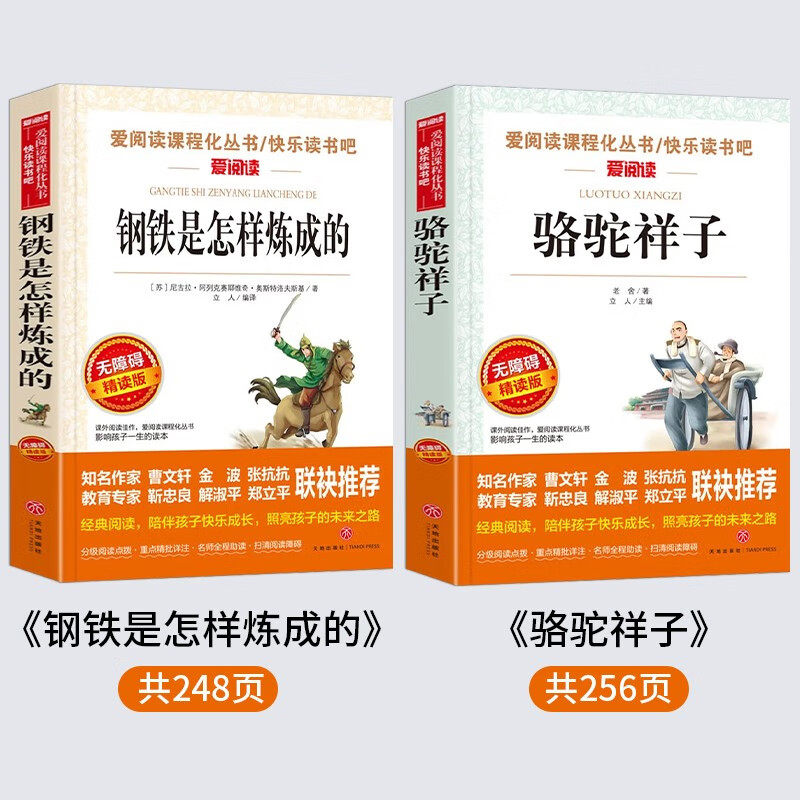 七年级下册人教版语文推荐阅读名著中,老舍的《骆驼祥子》与奥斯特洛夫斯基的《钢铁是怎样炼成的》均为经典必读作品。《骆驼祥子》以北平为背景,讲述人力车夫祥子三起三落的悲惨命运,深刻揭露旧社会对底层人民的压迫,语言朴实生动,极具感染力。《钢铁是怎样炼成的》则通过保尔·柯察金的成长历程,展现革命者坚韧不拔的意志与崇高理想,激励青少年树立信念、勇于奋斗。两书均由人民教育出版社出版,为正版原著,内容权威,是初一学生提升文学素养、拓展思想深度的重要读物,深受老师推荐,值得认真阅读与品味。