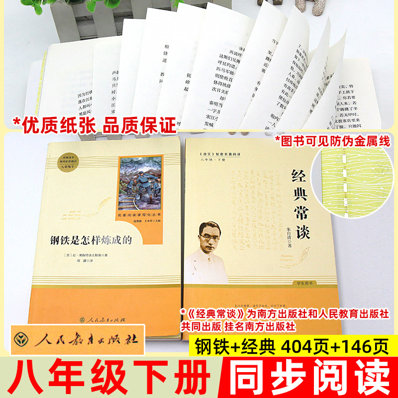 《经典常谈》《昆虫记》《钢铁是怎样炼成的》《傅雷家书》为人民教育出版社八年级下册语文推荐阅读名著,均为正版原著完整版,紧扣新课标要求。朱自清《经典常谈》深入浅出解读中华经典文化;法布尔《昆虫记》以科学笔触描绘昆虫世界,兼具文学与科普价值;奥斯特洛夫斯基《钢铁是怎样炼成的》展现坚韧意志与崇高理想;《傅雷家书》则通过家信传递教育理念与人生智慧。四部作品思想深刻、语言优美,是初二学生提升语文素养、拓展视野的重要读物,配套教材同步阅读,助力深度学习与思维成长。