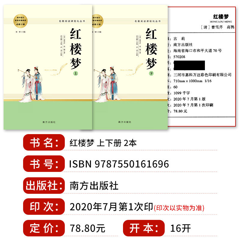 《红楼梦》原著正版(上下册)是人民教育、南方出版社联合推出的青少年版课外整本书阅读丛书,专为高中生高一必读设计。本书为无删减完整版,保留曹雪芹原著风貌,语言典雅,情节完整,适合青少年深入理解四大名著精髓。书中配有文言文备考解析,帮助学生攻克阅读难点,提升文学素养与应试能力。作为新课标推荐书目,该版本兼顾学术性与可读性,注释详实,排版清晰,是高中生整本书阅读、高考语文备考的理想读本,助力学生全面掌握古典文学经典,感受中华优秀传统文化魅力。
