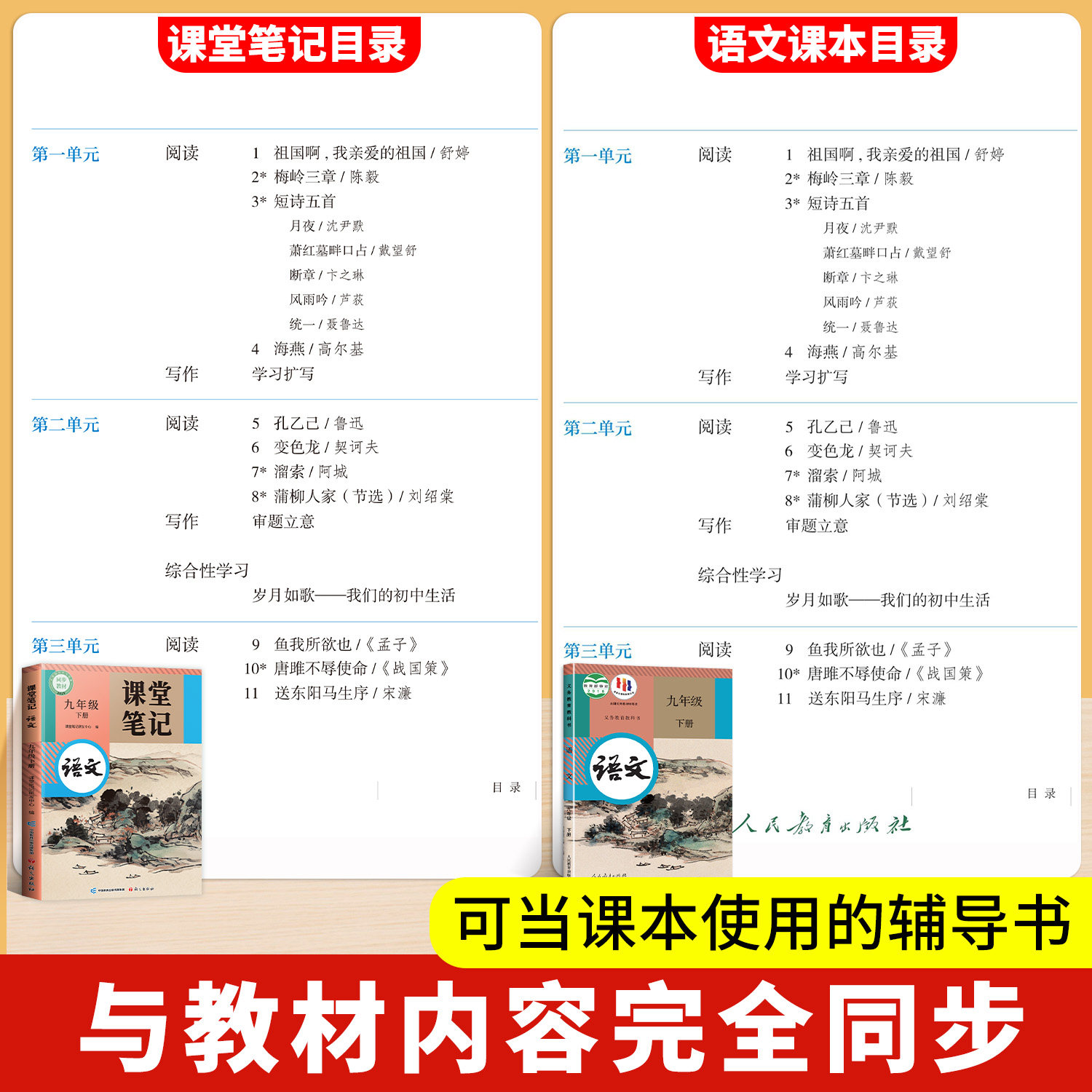 天猫2026新版九年级下册上册语文课堂笔记新教材初三人教版九下全套课本开学预习中学随堂笔记解读全解初中教辅新教材学习笔记辅导书