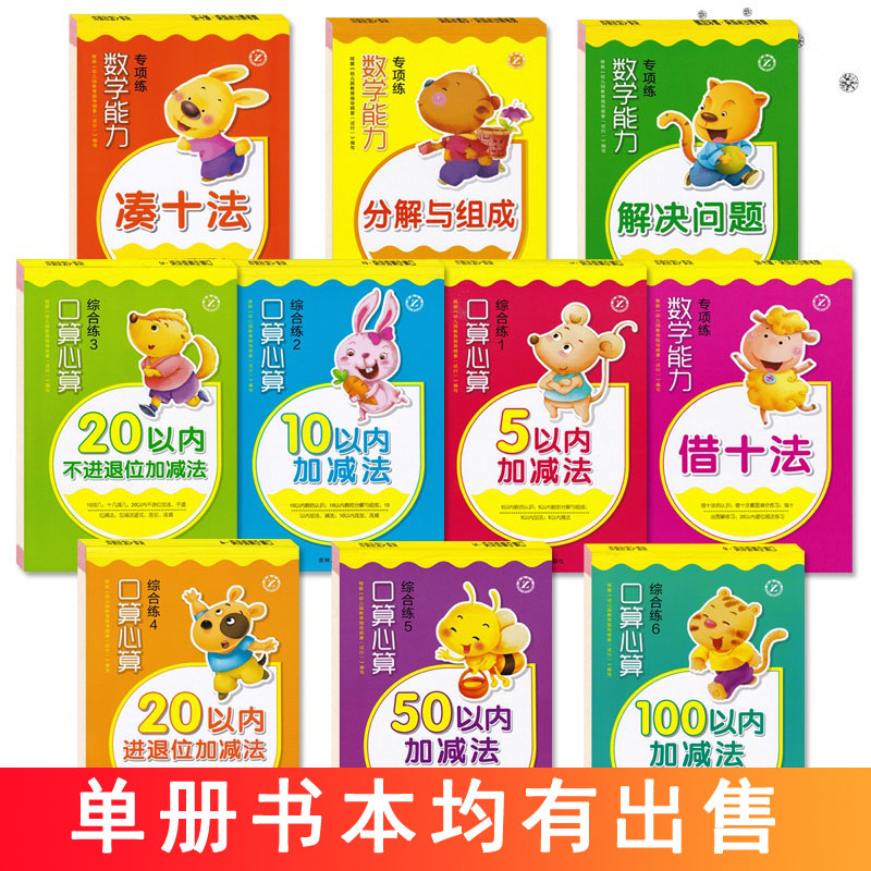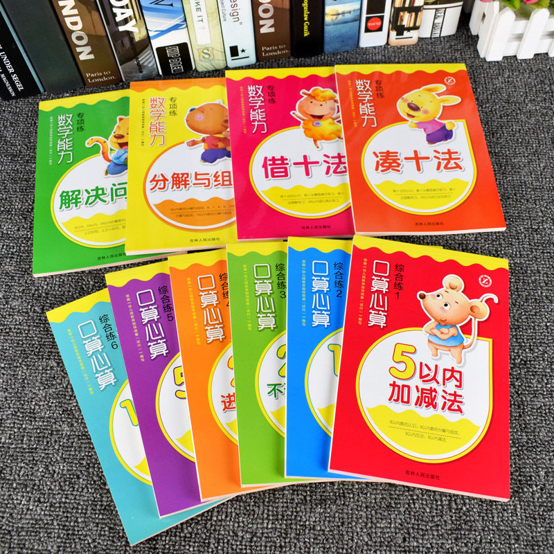 天猫幼小衔接口算心算综合练数学能力专项练10本幼儿园数学学前班数学题整合教材速算加减法算数本幼儿儿童学数学口算题梓育少儿