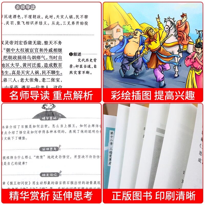 《四大名著》小学生版专为青少年读者精心改编,保留原著精华,语言通俗易懂,配以精美插图,适合五年级学生阅读。本套书包括《三国演义》《西游记》《红楼梦》《水浒传》,内容忠于原著,删减复杂情节,突出人物性格与经典故事,如“桃园结义”“三打白骨精”“黛玉葬花”“武松打虎”等,激发孩子阅读兴趣。作为教育部推荐课外读物,本套书有助于提升语文素养,培养传统文化认知与思辨能力。正版印制,纸张环保,字号适中,保护视力。是老师推荐、家长信赖的经典读物,助力孩子假期与下学期课外阅读,开启智慧人生。