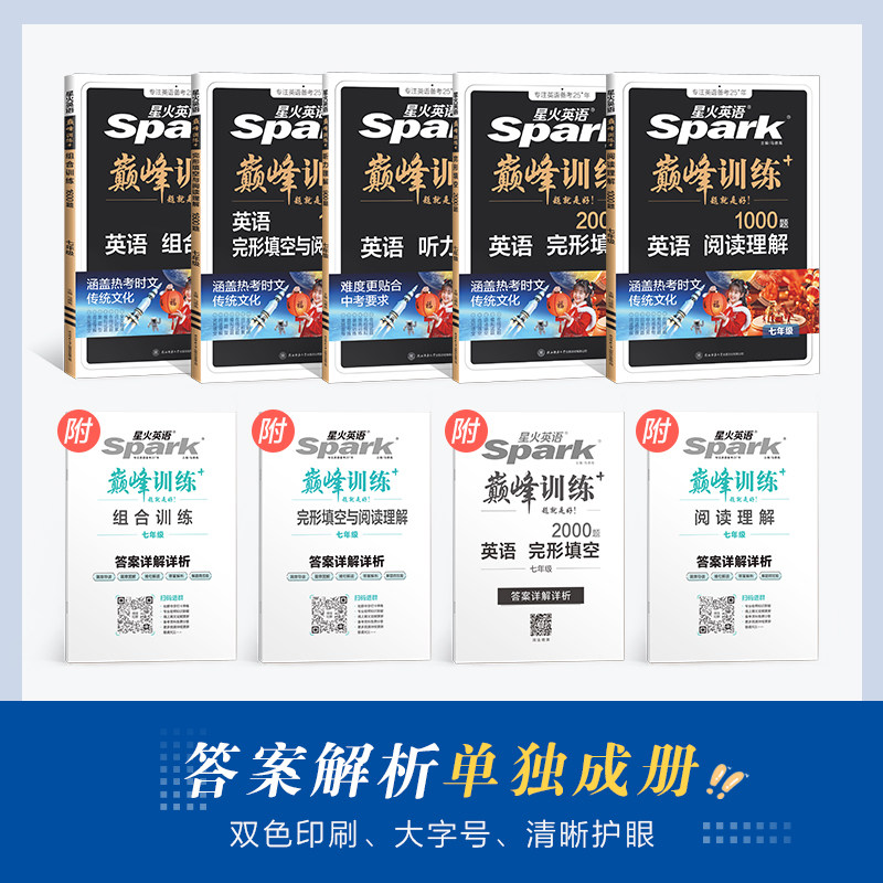 天猫星火英语初中生英语完形填空与阅读理解巅峰专项训练试卷初一二初三中考英语听力七八九年级完型语法填空高频词汇书真题必刷2026新