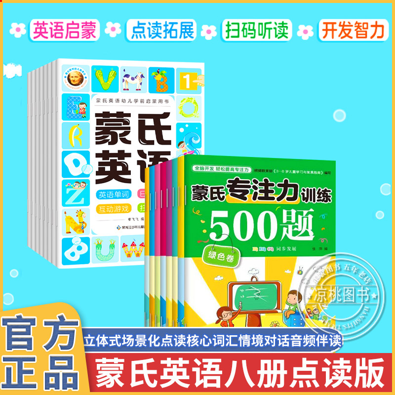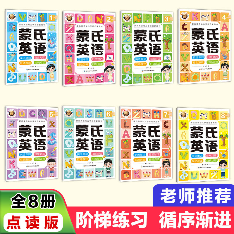 天猫幼儿英语教材全8册蒙氏儿童英语启蒙绘本3-4-6岁幼小衔接少儿英语入门学口语幼儿园学前班宝宝英语入门自学零基础书籍大中小班读物